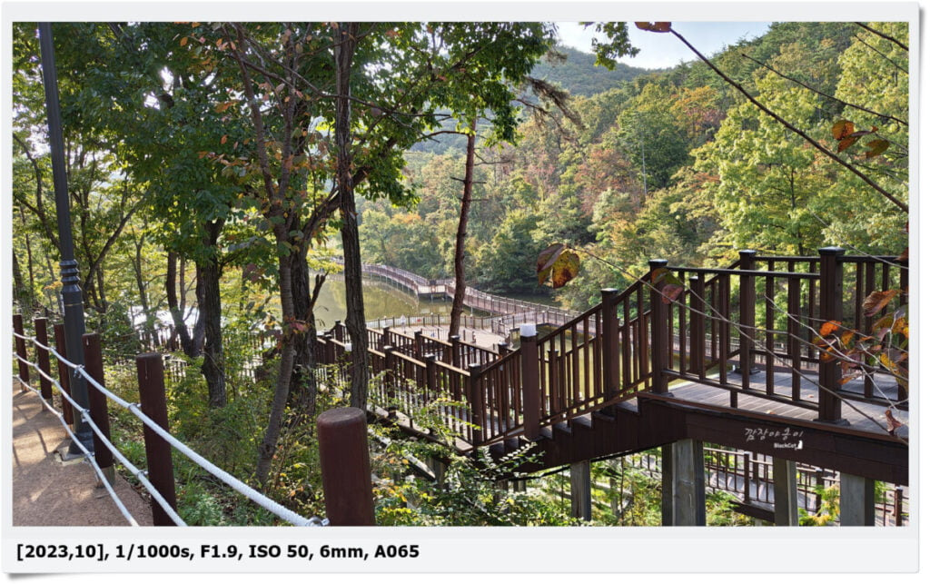 작은 드론이 있다면 호수와 데크를 중심으로 영상을 촬영해 봐도 멋진 그림이 될 거 같네요.