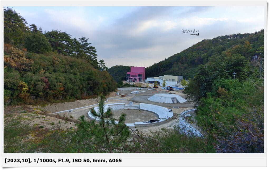 장안 안데르센동화마을은 아직 공사중에 있습니다. 주차장이 초입에 있고 이후 가파른 언덕길을 올라와야 지금 사진으로 보이시는 안데르센극장과 공사현장들이 있고 그 위에 제가 사진을 찍고 있는 곳이 안데르센동화마을인데요.