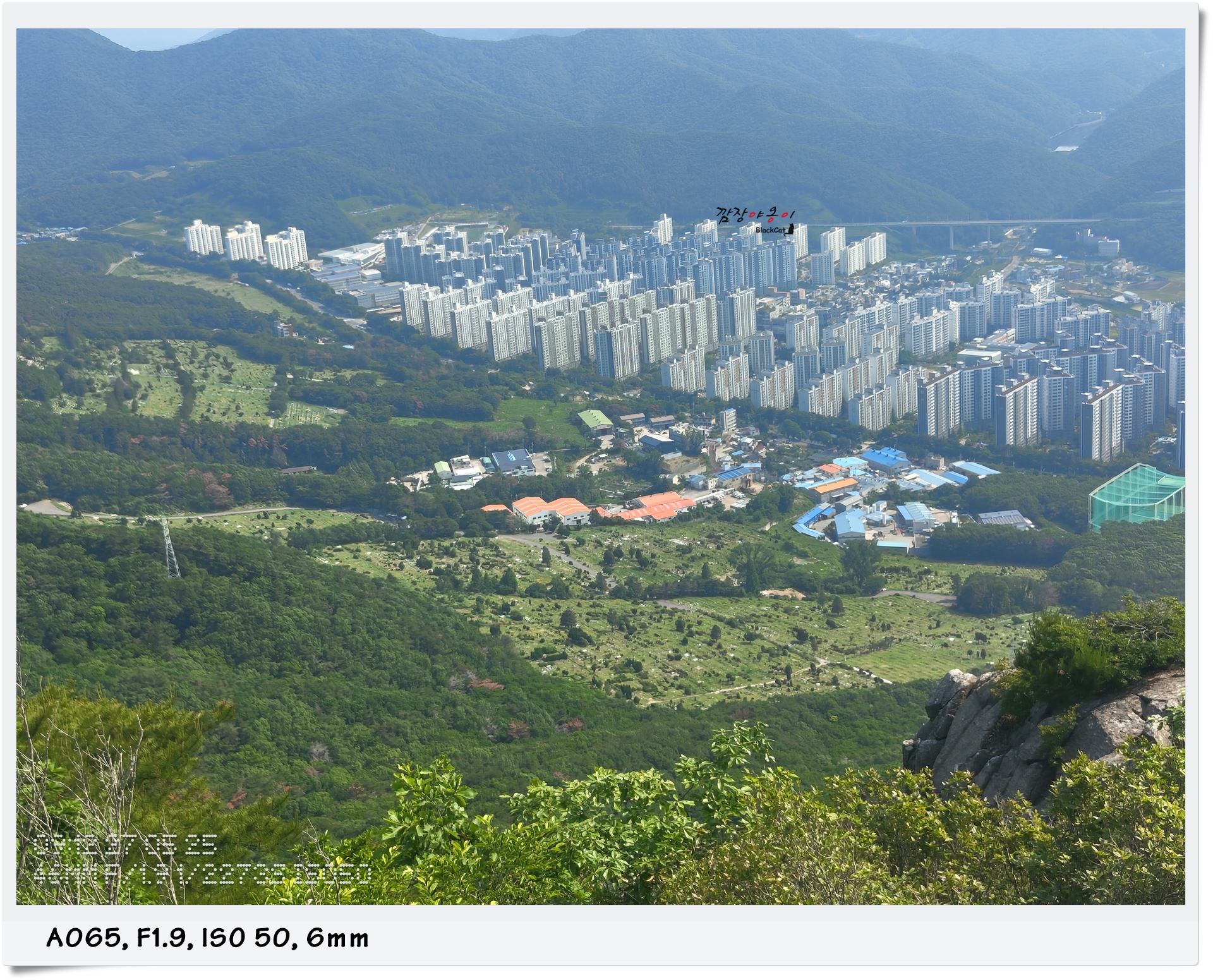 날이 좀 뿌옇게 되어 있어 아쉽네요. 정관은 초승달/ 부메랑 모양 처럼 생긴 신도시인데 사진으론 티가 잘 안나는 듯 합니다.