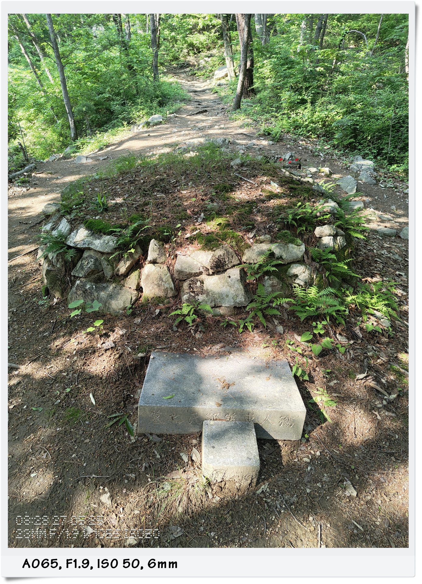 위치를 알려주는 마지막 노란 안내판을 지나자 말자 누군가가 흘리고 간 카드를 주워 이렇게 돌 사이에 끼워 놓으셨네요.