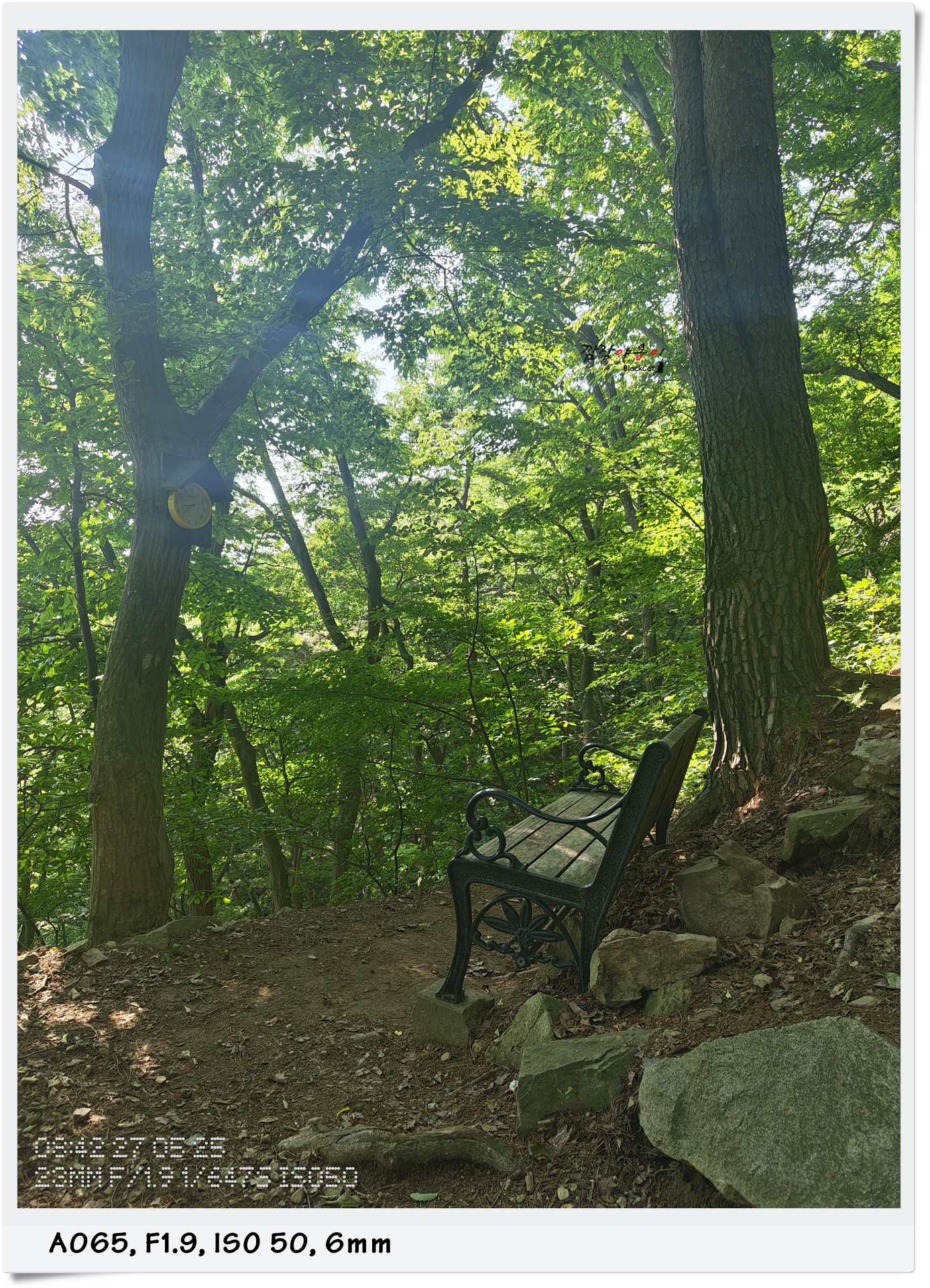 초반/ 중반에는 없던 벤치들이 위로 올라가면 몇개 보입니다. 벤치 앞에 나무에 시계가 있는 게 보이시나요? 혹시나 해서 폰을 꺼내봤는데 시간이 맞습니다 ㅋ