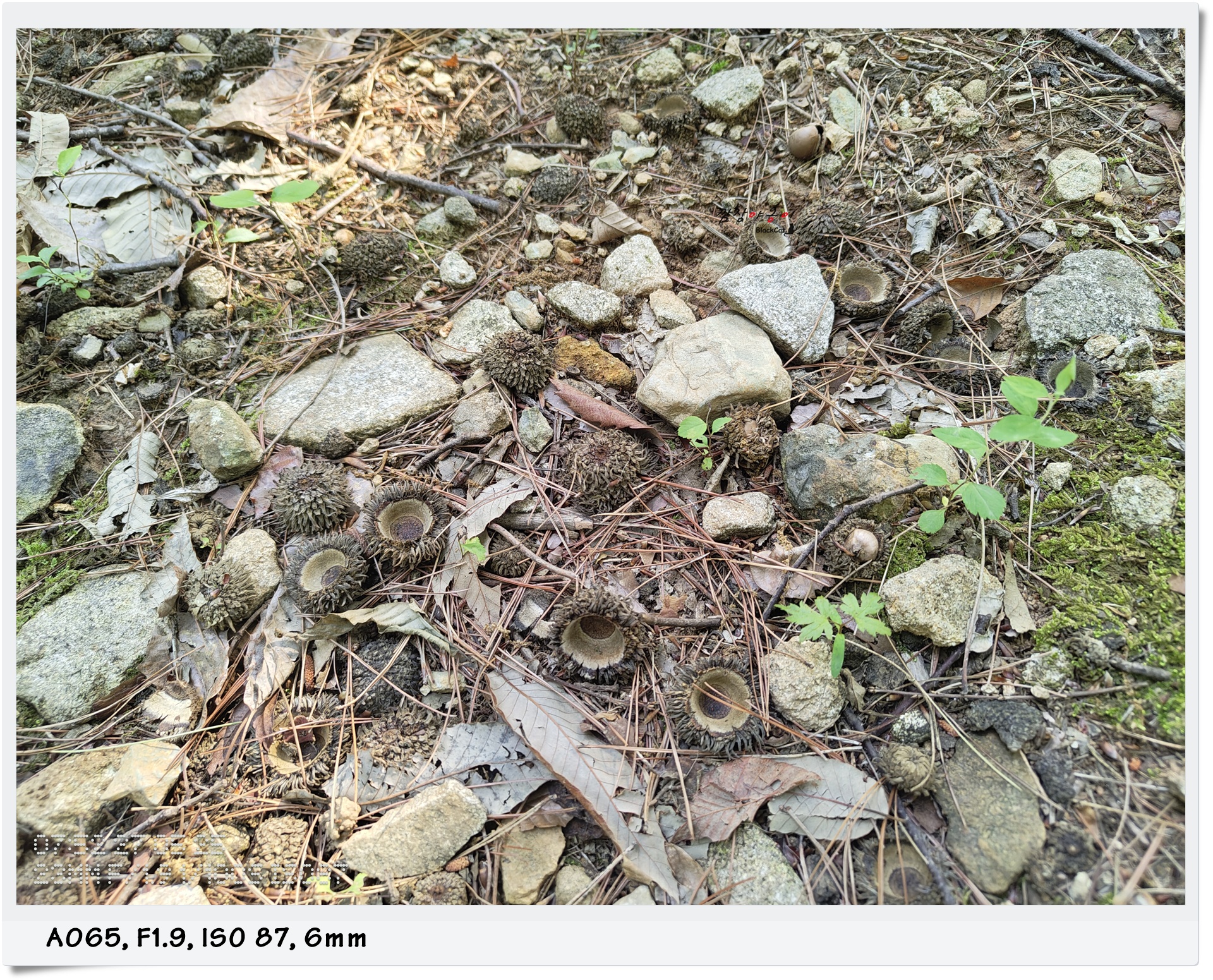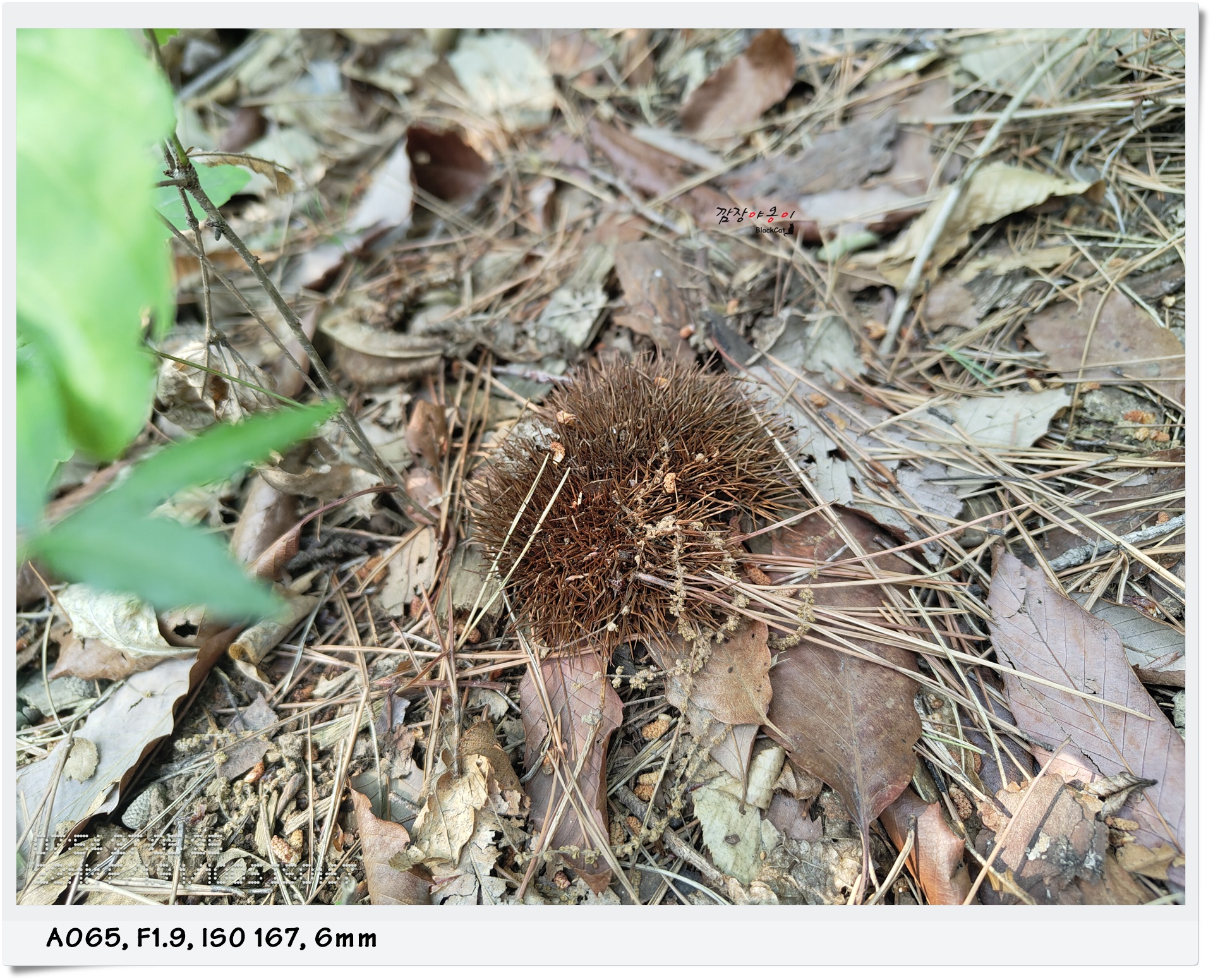 도토리와 밤송이가 보이네요. 밤나무를 확실히 모르겠지만 밤송이가 있다는 건 주위에 밤나무가 있을 수 있다는 이야기니 가을에 오시는 분은 혹시나 떨어지는 밤송이에 맞지 않도록 조심하셔야 겠어요.