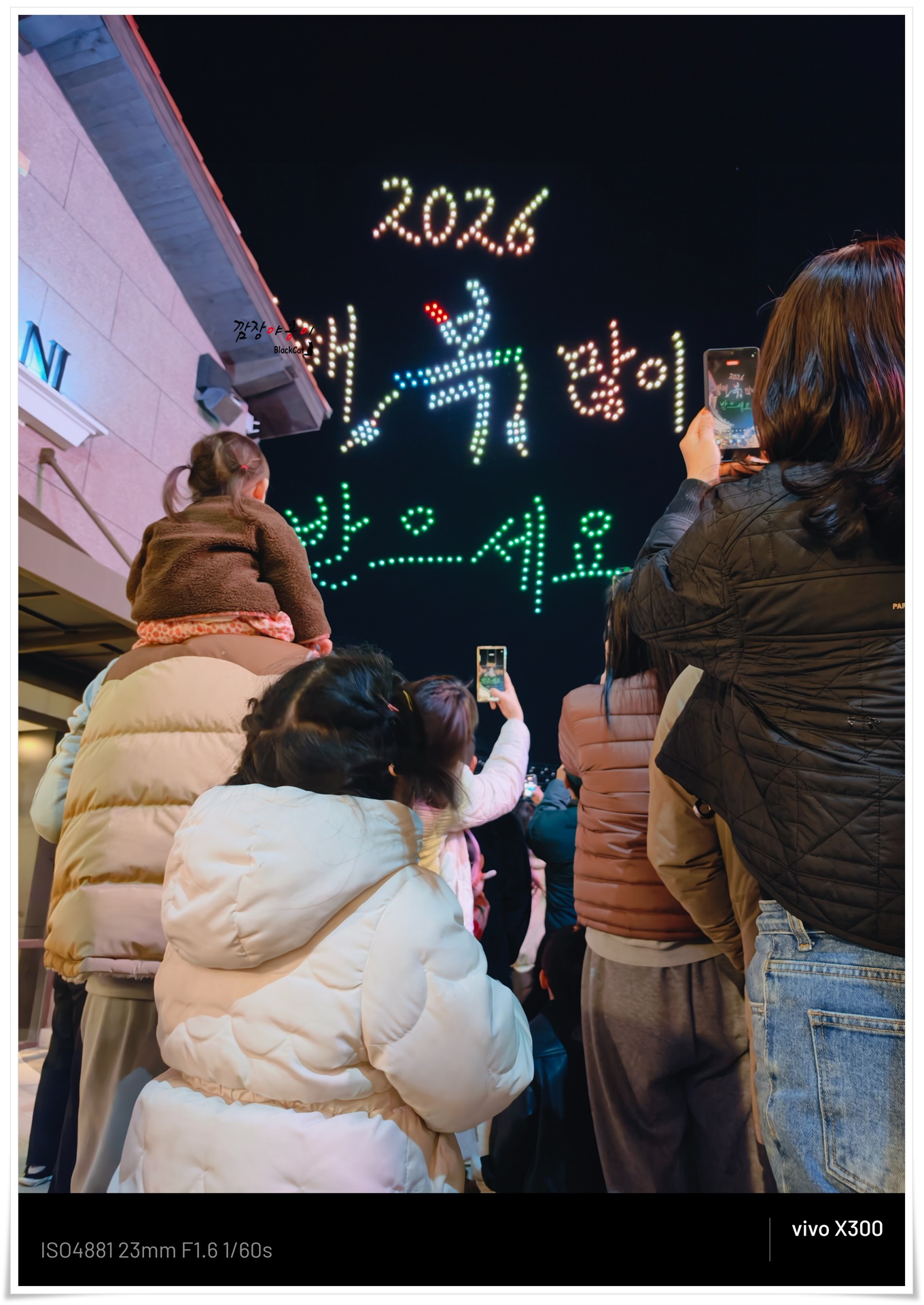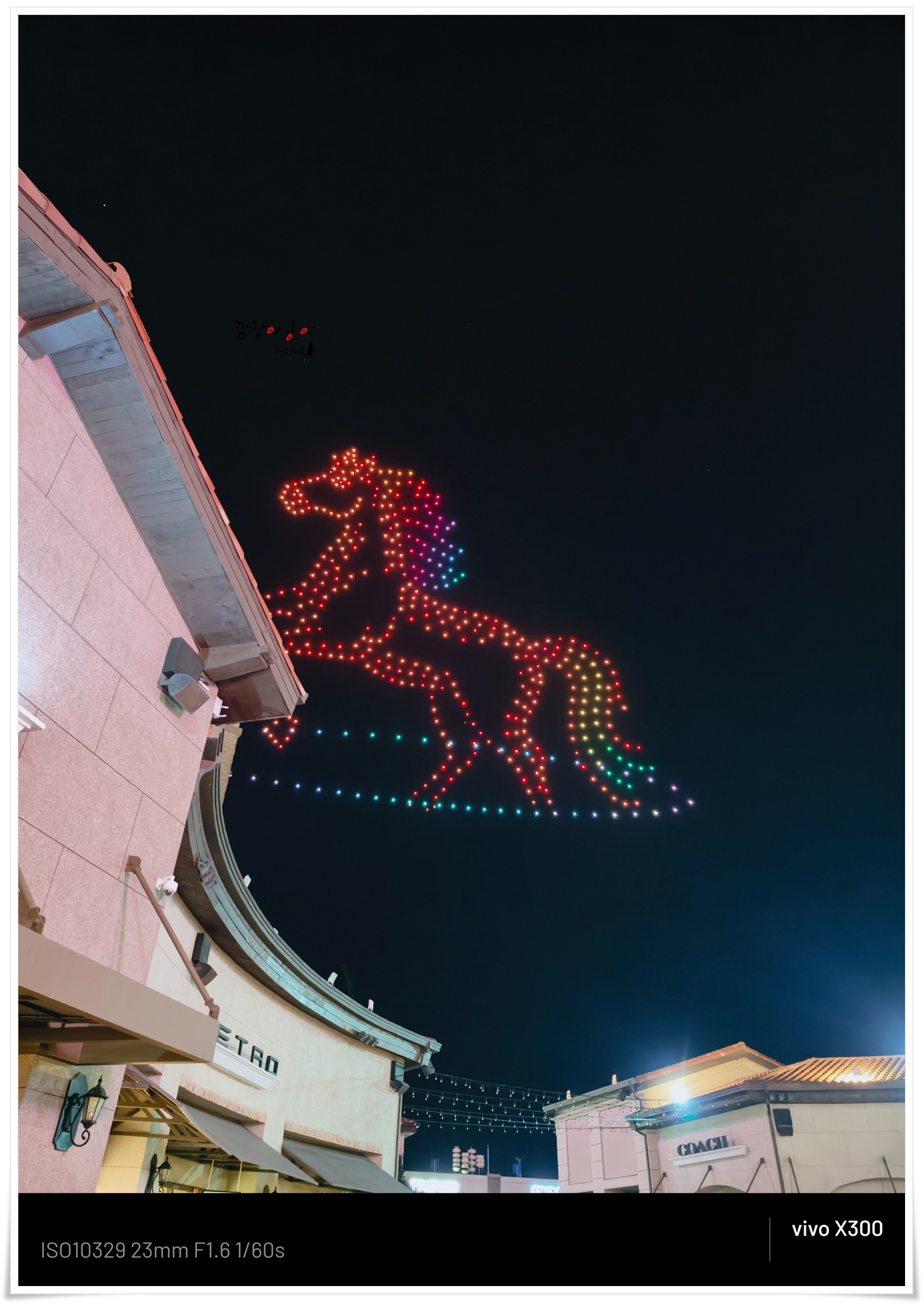 올해 2026년은 말띠해죠. 2번째로 나타난 모양은 힘차게 질주하는 말입니다. 조금만 눈 크게 뜨고 세알려 보면 드론갯수도 셀 수 있을 듯 하네요 ㅎ