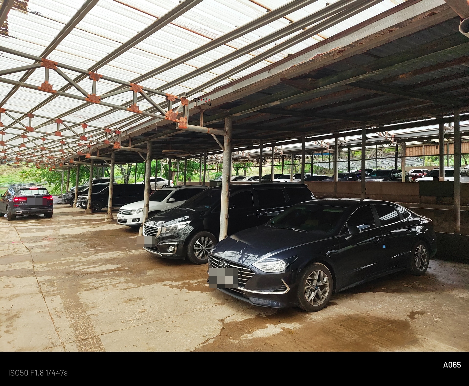 예전엔 동물들 우리로 사용되었을 곳이 지금은 주차장으로 이용되고 있습니다. 한 공간에 차 2대 넣기엔 조금 좁고 한대 넣기엔 넓은 공간이라 대부분 한 공간에 한대씩 주차를 하시네요.