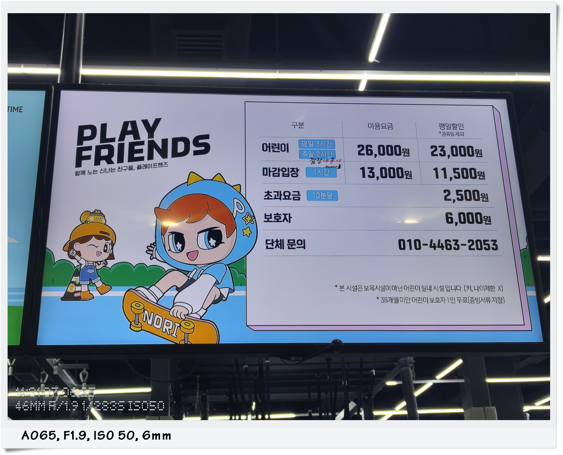 화장실 앞쪽으로 고객대기실(?)이 있습니다. 함께 입장한 부모님들이 아이들이 뛰어 놀동안 앉아서 쉴 수 있는 공간이 있는데 입장을 위해선 36개월 이상 기준으로 6,000원을 부담하셔야 합니다.