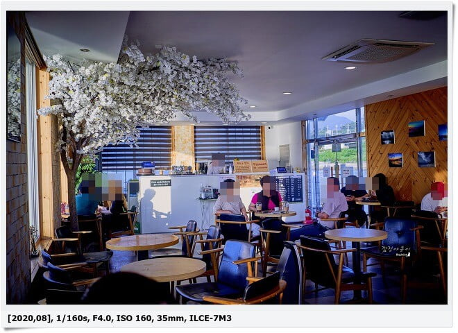 카페 내부가 그리 큰편은 아닌데요. 누가찍었는지는 모르겠지만 씨멘스를 배경으로 한 예쁜 일몰 사진들이 액자로 걸려있네요.