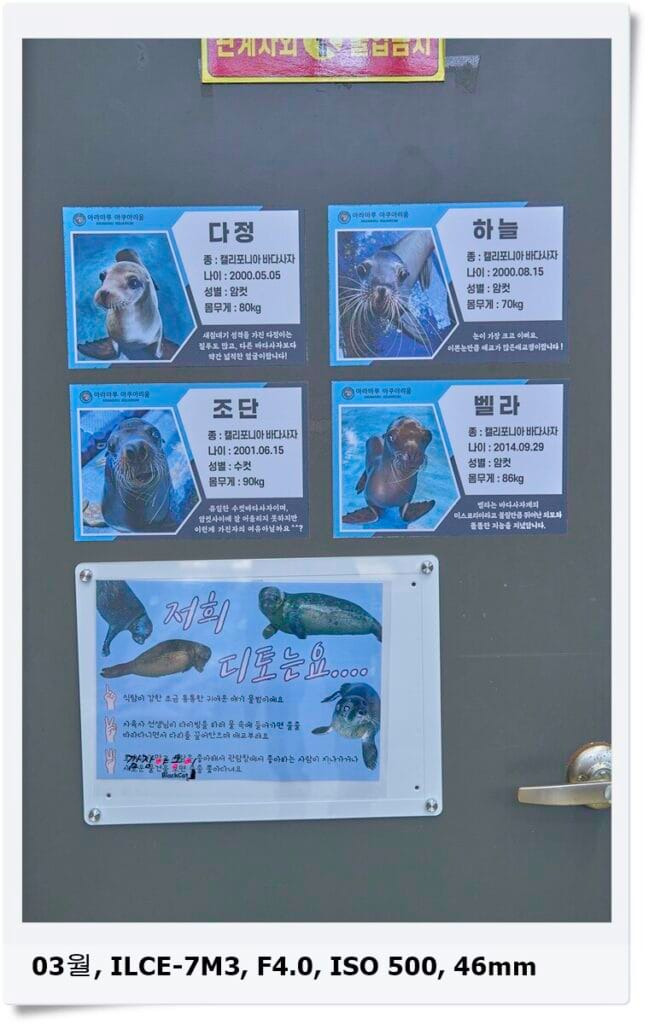 물범과 바다사자 생태설명회도 있던데.. 시간이 안맞아서;; 생태설명회 해도 햇살이는 안들을거 뻔하지만 ㅋ