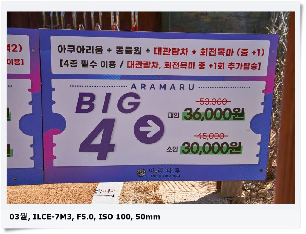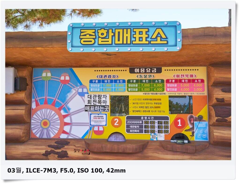 아라마루 아쿠아리움은 총 3개의 파트로 나뉘어 있는데 하마가 있는 아쿠아리움/ 야외 동물원/ 야외 놀이기구로 나뉩니다. 동물원, 회전목마는 가격이 비싸지 않은데 메인이 되는 아쿠아리움 가격이 비싼편입니다.