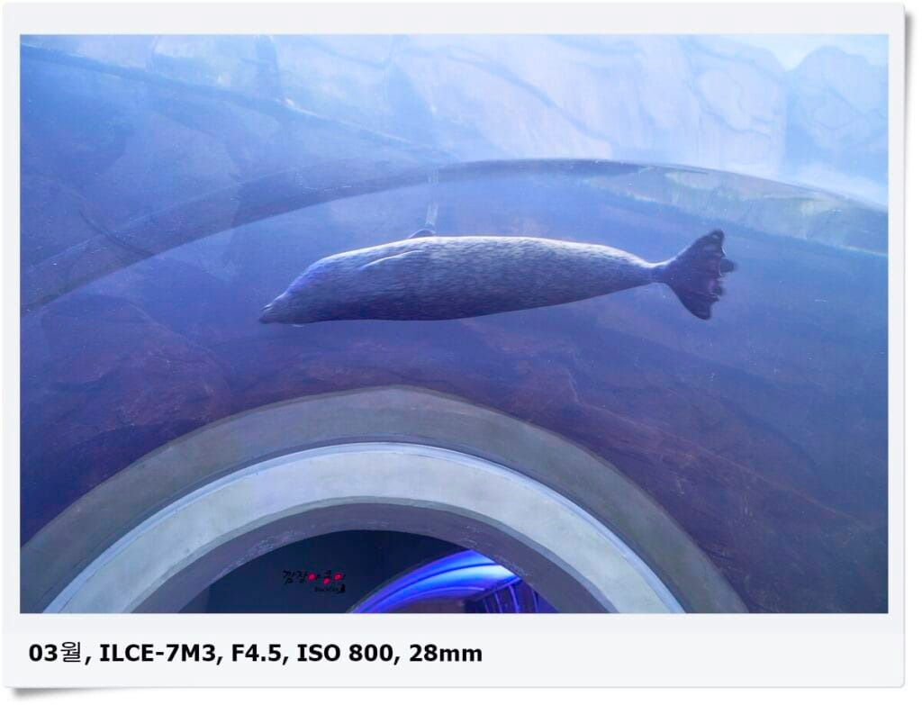 입구부터 투명한 유리터널로 되어 있어 머리 위로 물범들이 헤엄치는 것을 볼 수 있답니다.