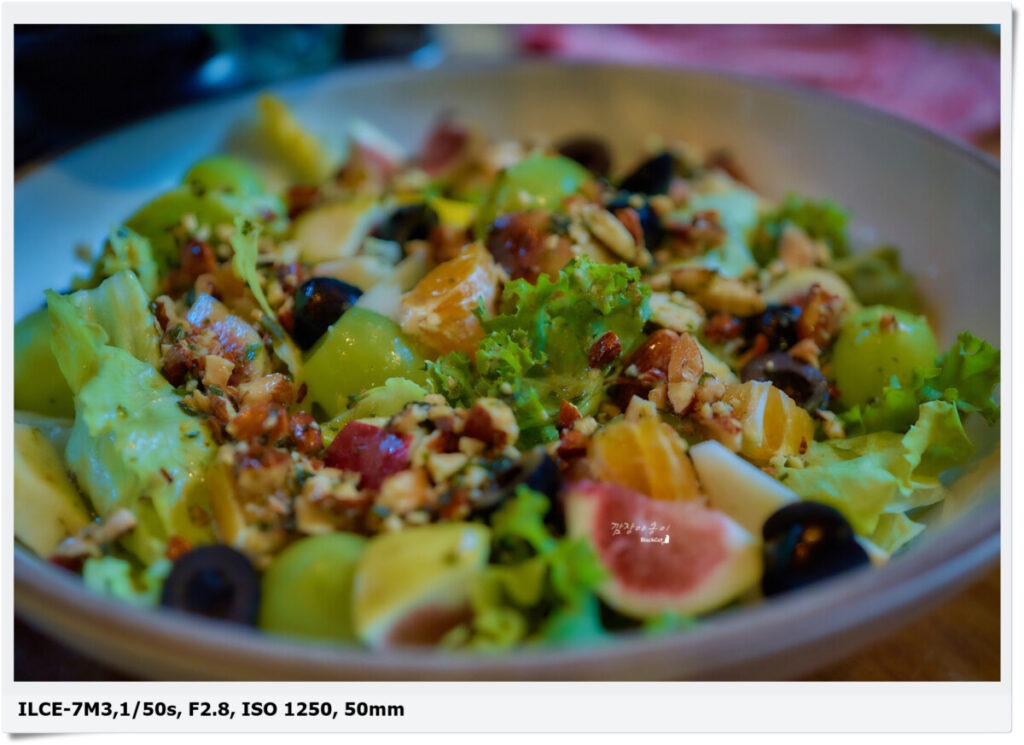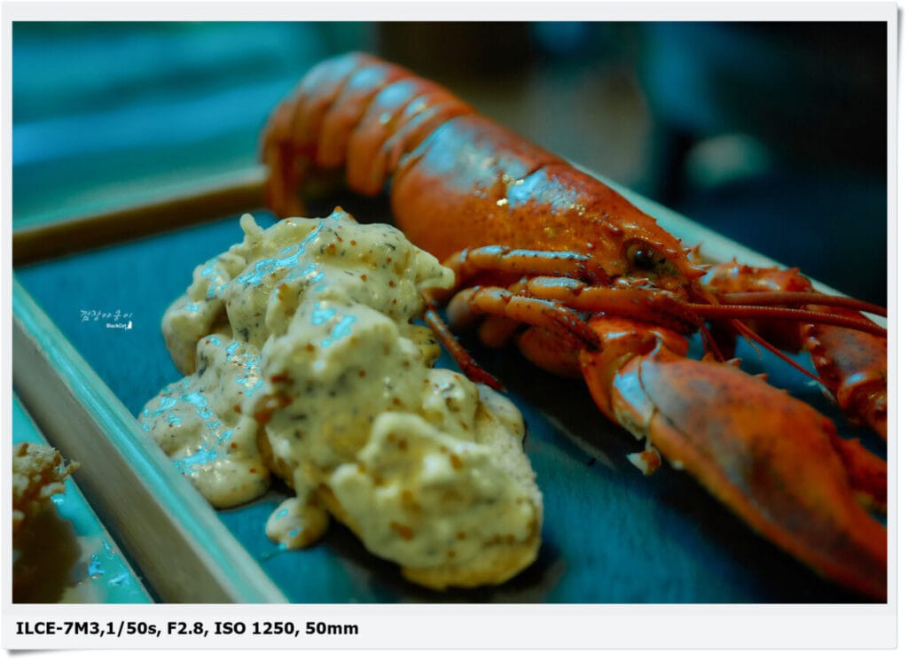 한우 투뿔 등심, 수제 샐러드, 수제 새우튀김, 그린 홍합 볶음밥, 한우육회, 참다랑어 1번 뱃살(참치), 랍스터 & 수제 크림소스가 오늘 저녁으로 나왔네요.