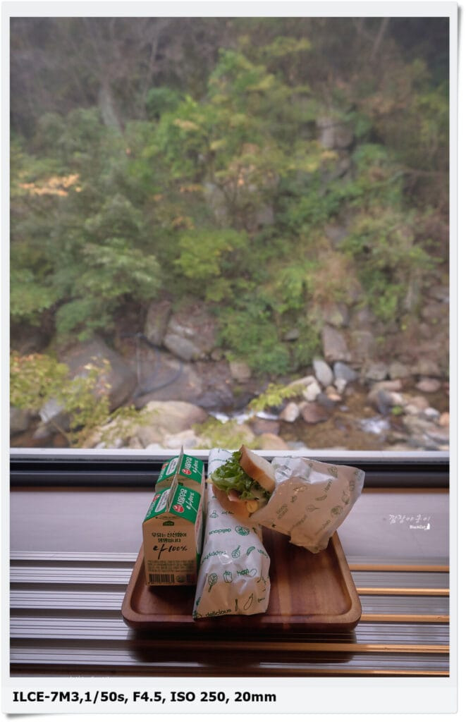 보기에는 그냥 우유와 샌드위치인데 샌드위치가 야채가 신선한게 느껴지고 소스도 무지 맛있었답니다. 그리고 갓 만들었는지 따뜻하기까지 해서 정취암에서 떨었던 게 바로 녹았네요. 양도 딱 적당해서 좋았네요.