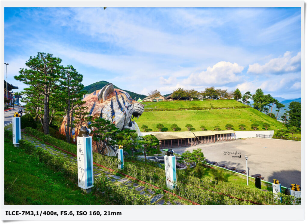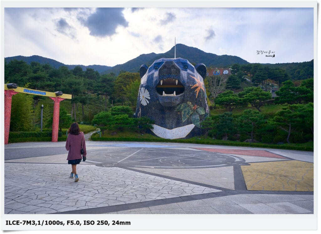 작은 광장 앞에 곰이 있네요. 사실 이 곰은 전망대로 내부로 들어 갈 수 있는데 곰이 웅녀가 되는 과정을 담은 삽화가 1층에 있고 계단을 이용해 2층으로 올라가면 곰의 입 사이로 밖을 내다 볼 수 있도록 되어 있답니다.