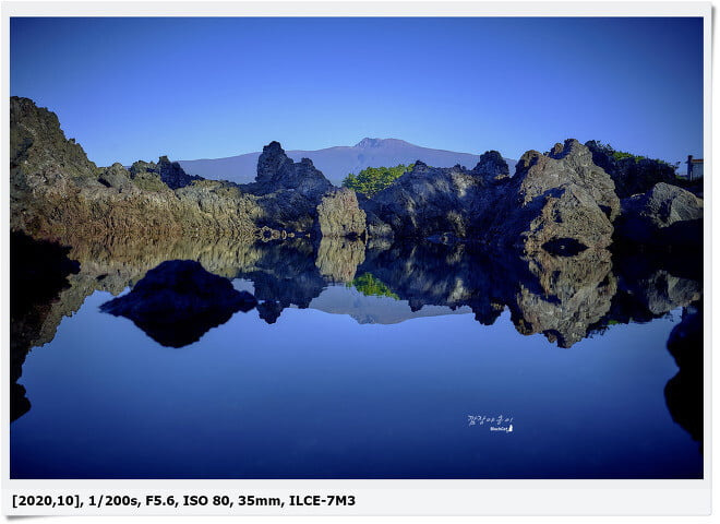 바닷물이 연못처럼 저 돌 사이에 물이 갖힌 형태인데요. 오늘 사진에서 제일 중요한 한가지는 바로!! "바람이 없어야 한다"