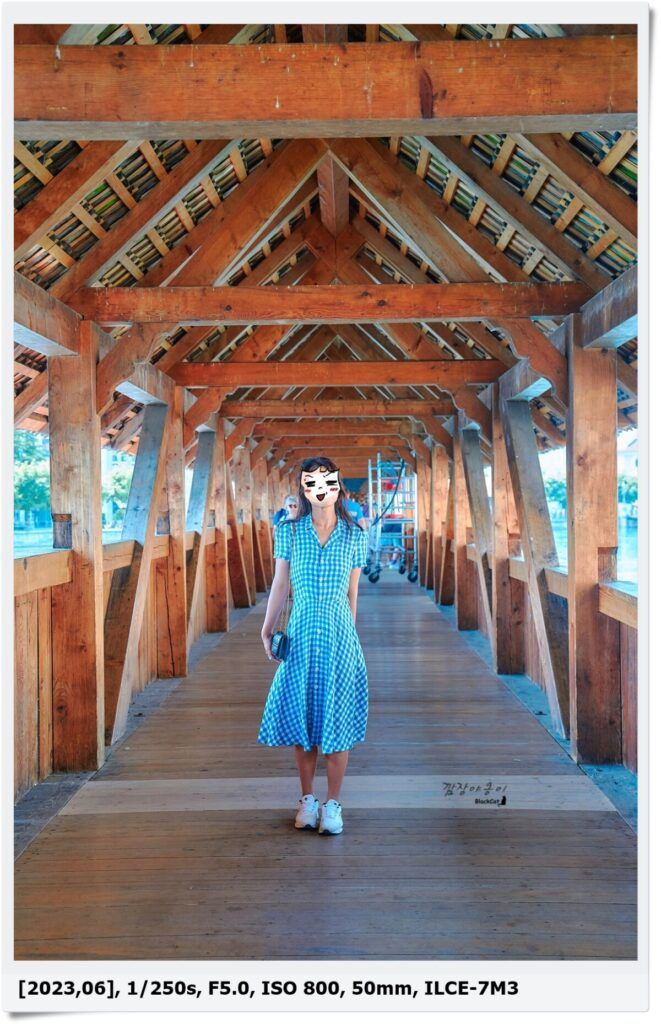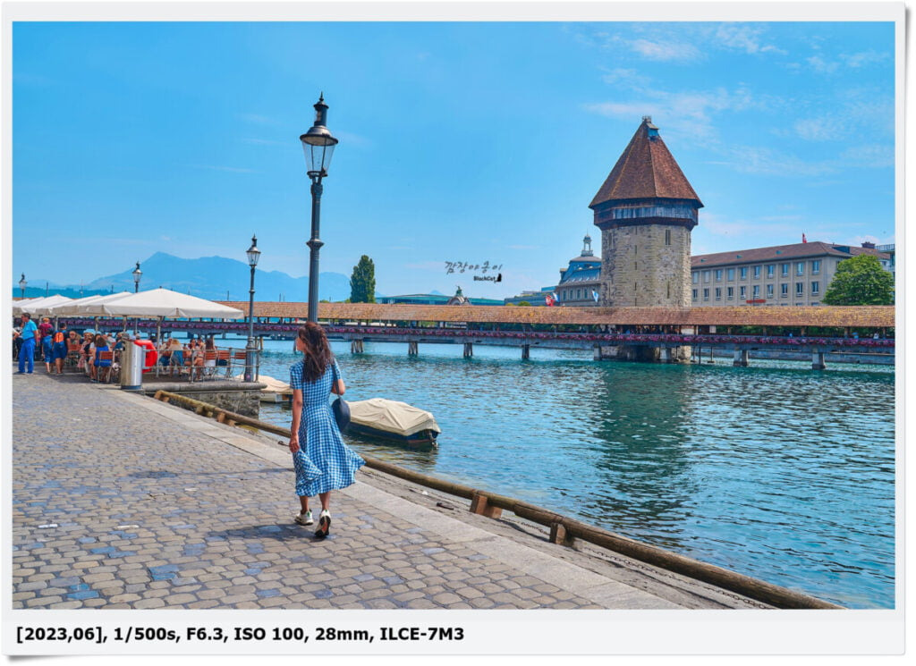 '카펠교'는 사람이 걸어서 건널 수 있는 목조다리인데 유명한 관장지이다 보니 이곳을 방문하는 관광객도 많습니다. 카펠교는 무료로 이용할 수 있으며 다리 중간에는 기념품가게도 있네요.