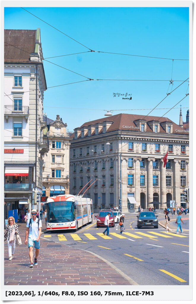 오랜기간 묵었던 인터라켄과는 또 다른 도시적인 모습을 볼 수있는 곳입니다. 중앙역 밖으로 나오면 한국에서는 볼 수 없는 서양 특유의 건물들과 전선들 아래로 움직이는 시가 전철 등을 보실 수 있네요.