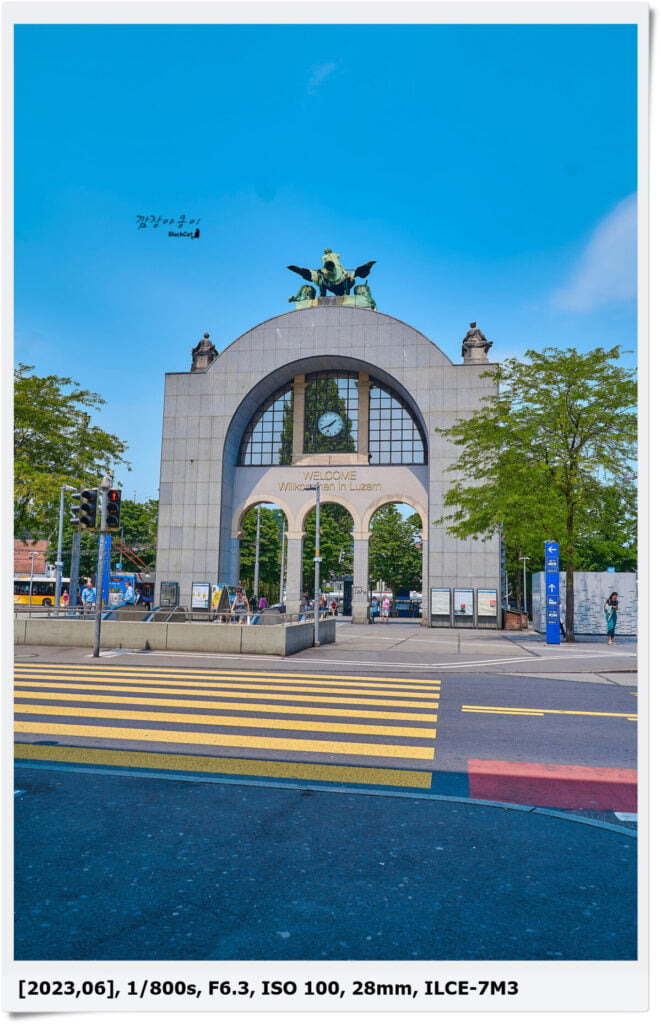 그리고 역을 나오면 가장 먼저 볼 수 있는 것이 'Torbogen Luzern'로(마지막 사진) 1971년에 큰 화재로 기존의 루체른 기차역이 소실되고 1991년 지금의 중앙역이 새로 개통하면서 유일하게 화재당시 소실되지 않은 아치형 통로로 상단에는 스위스 조각가 '리처드 키슬링'이 조각한 "Zeitgeist" 이란 이름을 가진 여성 조각상이 조각되어 있습니다.