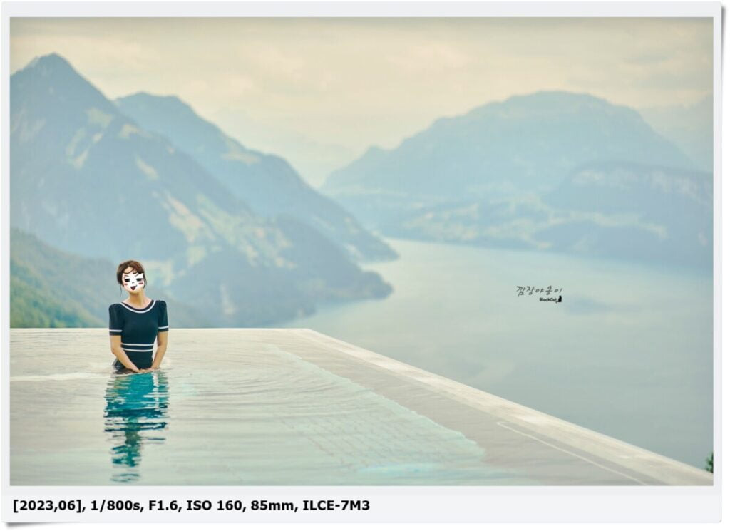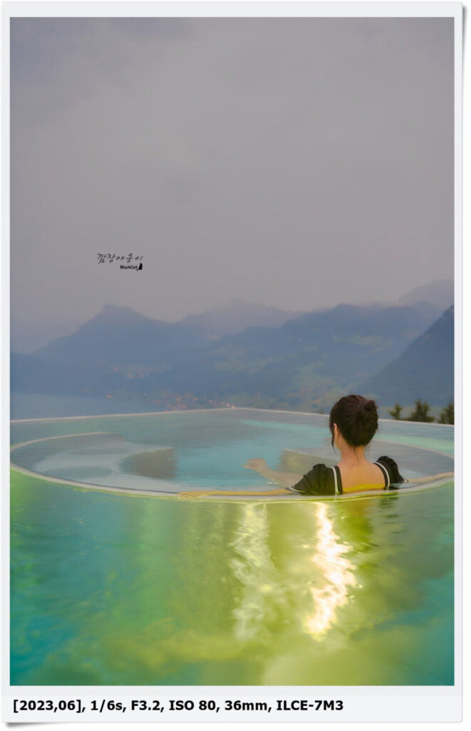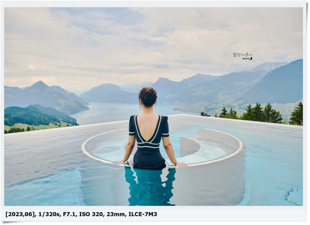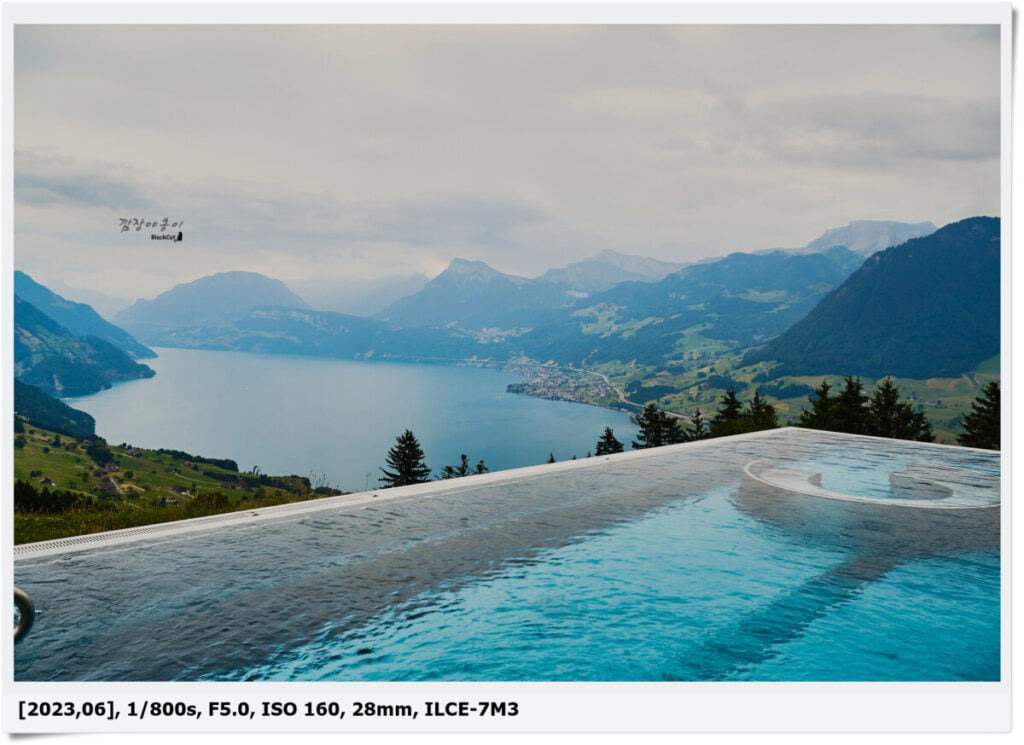 빌라호네그 호텔이 비싸지만 유명한 이유는 바로 루체른 호수를 내려다 보면서 즐길 수 있는 수영장과 사진 스팟이 있기 때문입니다.