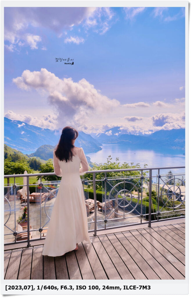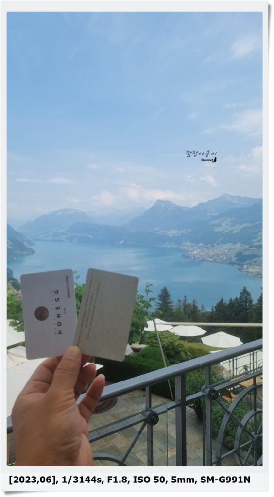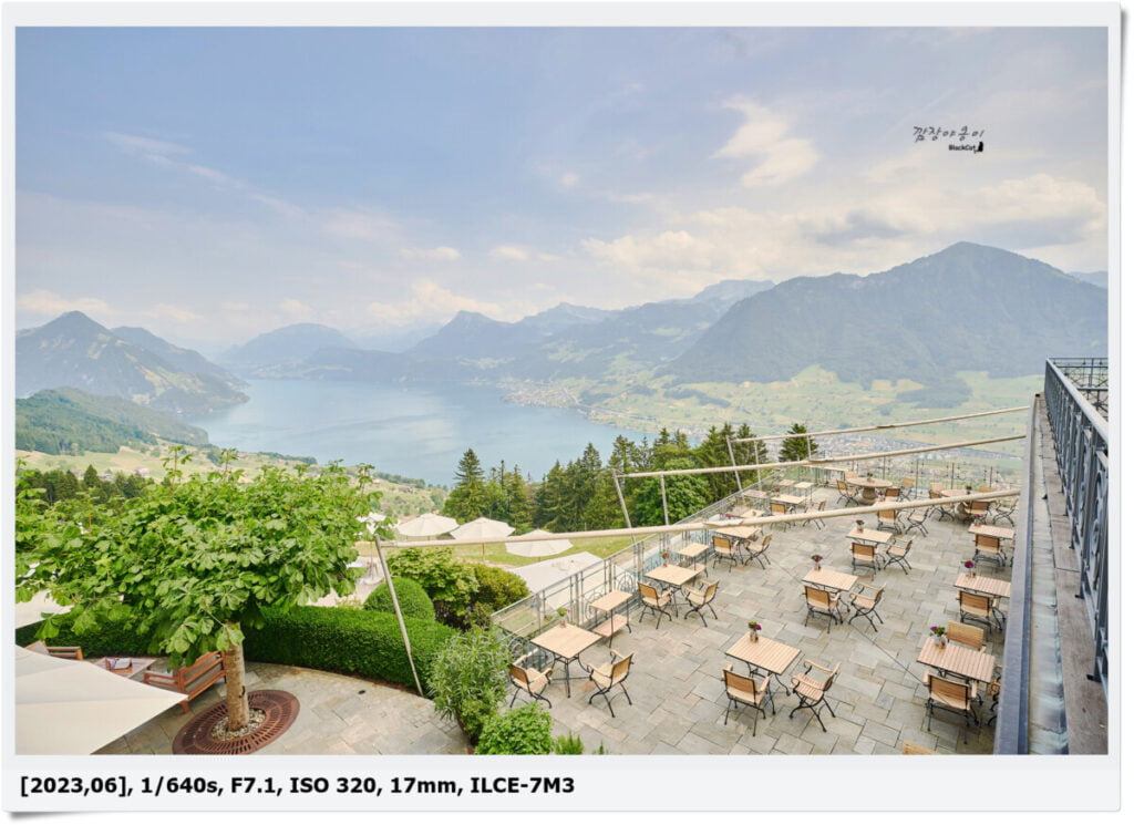 그래도 다행이 비가 오기까지 시간이 조금 있어서 루체른 호수가 보일때 사진을 좀 찍긴 했네요. 푸니쿨라까지 타고 올라 와서 그런지 뷰가 장난 아니죠? 진짜 스위스는………….뷰야 뭐 말로 다 할 수가 없답니다.
