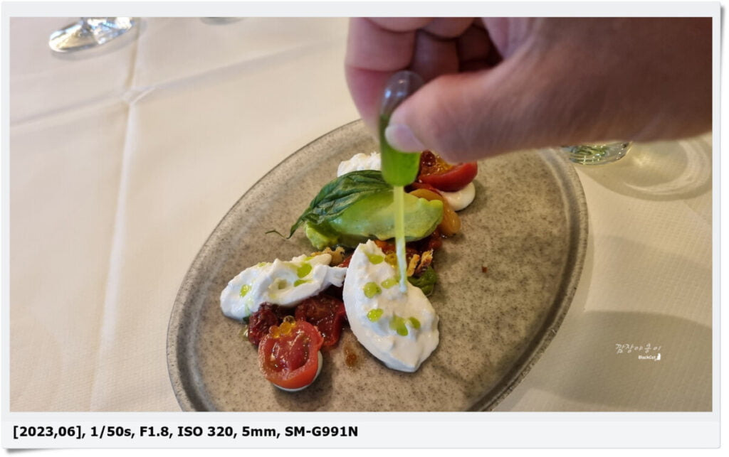 저희가 코스요리에 맞는 음료를 같이 주문했더니 매 코스마다 음료가 바뀌는데,, 같이 곁들이기 좋은 음료로 나와서 좋긴한데,, 양이 많더라구요. 전체적으로 조화는 훌륭했답니다. 다만 배가 불러서 거의 맛만 보고 다 남겼다능…