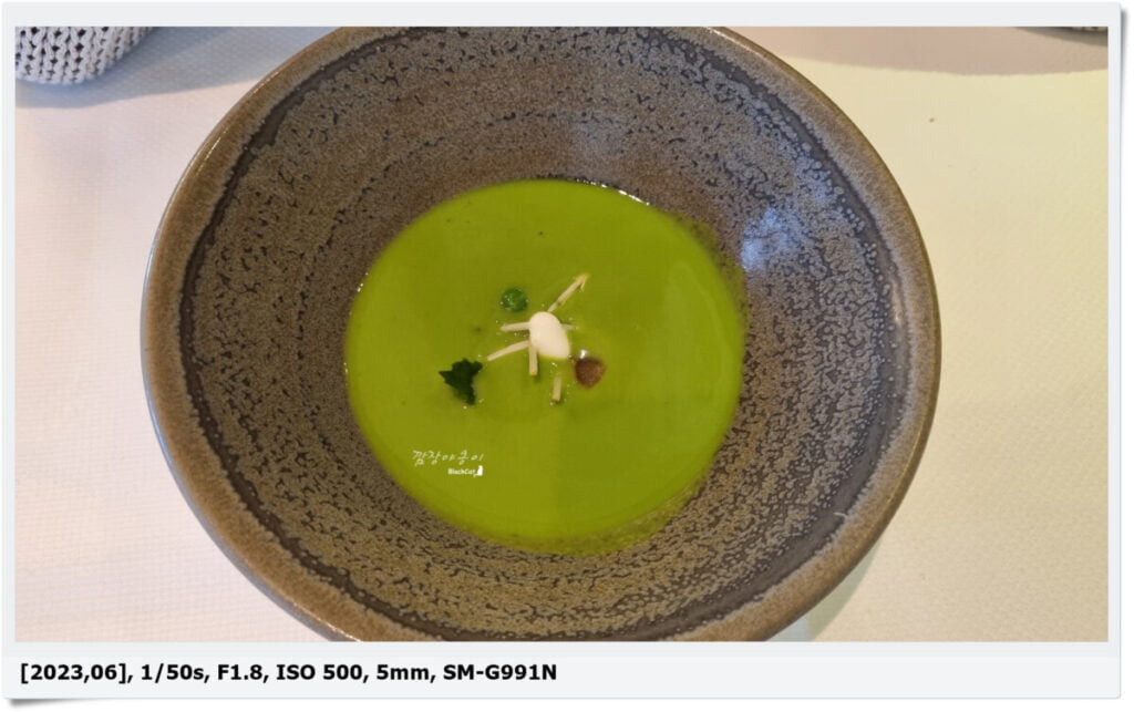 요건 와이프가 고른 건데,,, 생선이 들어간 차가운 스프인데,,,, 솔직히 맛이 없었습니다. 생선은 비린 걸 못먹는 와이프에게는 좀 비렸고,,, 콩수프인데,,, 그닥 추천드리지 않아요.