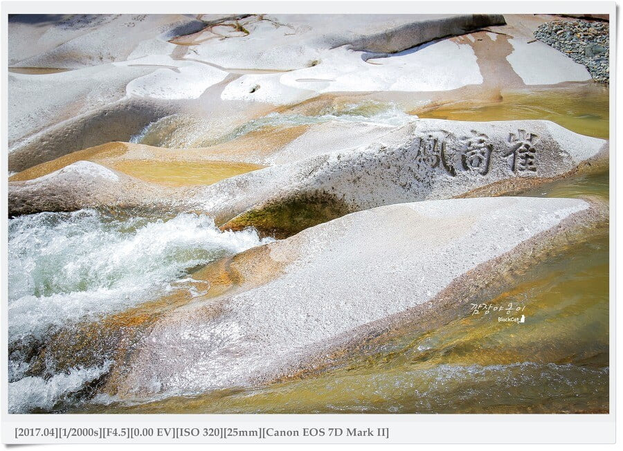 작괘천이 흐르는 하천의 너른바위에는 이렇게 글이 새겨져 있답니다. 이 글들은 시회 우수작 및 정몽주 선생을 추모하는 '모은대'와 울산의 여류 시인인 '이구소'의 이름도 새겨져 있다고 합니다.