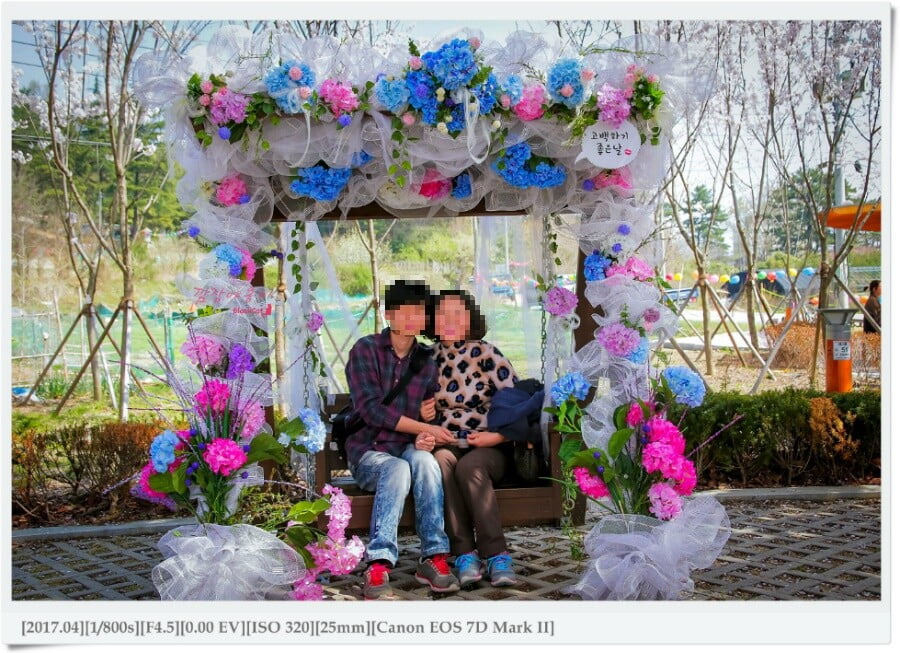 고목의 벚꽃나무 아래 쉴 수 있는 벤치도 있고 사진을 찍을 수 있게 꾸며둔 의자도 있길래 엄마랑 둘이 함께 사진도 찍고 했답니다. 옆에 계신 아주머니들 휴대폰으로 사진도 찍어드리고 했네요.