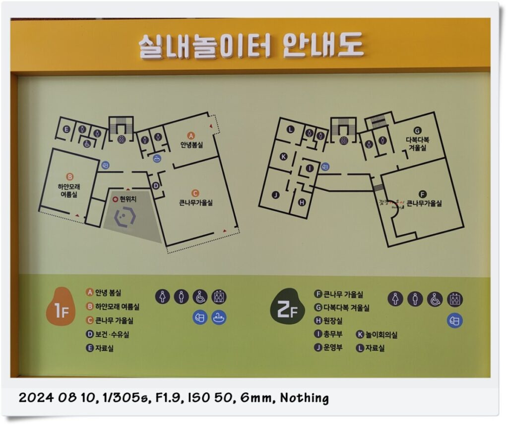 가을이 가장 큽니다. 큰 놀이시설물들이 있는 곳이라 1,2층을 모두 사용하고 있고 다른 봄,여름,겨울이 주로 앉아서 놀이를 하는 곳이라면 가을은 뛰어놀 수 있는 시설물 들로 구성되어 있습니다.