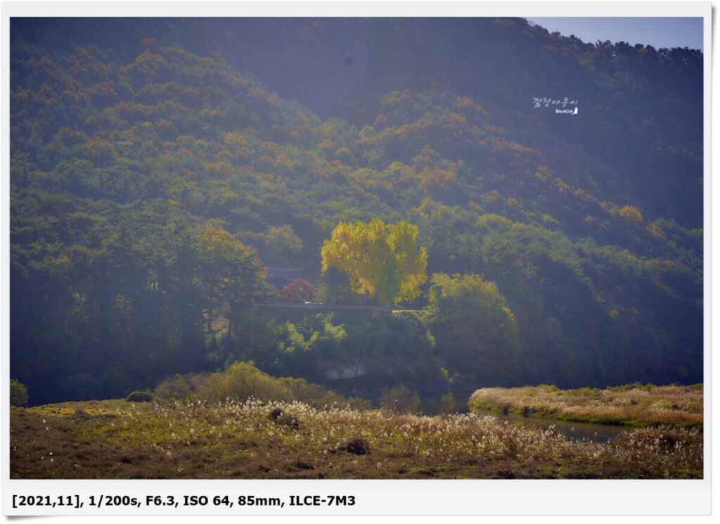 위에 두 사진을 보시면 아시겠지만 위 사진은 해가 뜬 뒤에 찍은 사진이고 아래 사진은 해가 아직 산을 넘어 오기전인데 차이가 확 나는게 보이시죠?? 예쁜 사진을 얻고 싶으시다면 해가 산을 넘어 금시당 백곡재의 은행나무를 비추는 그때 방문하셔야 좋을 거 같네요.