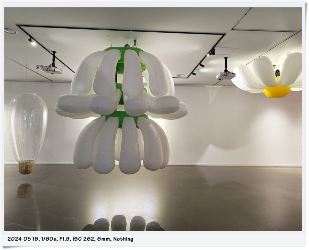 1층에는 작가들이 만들어 전시해둔 여러 작품들이 있습니다. 아이들이 좋아할 만한 소재를 이용한 미디어 시청도 있고 풍선류를 이용한 각종 움직이는 작품들도 있어 아이들이 좋아하네요.