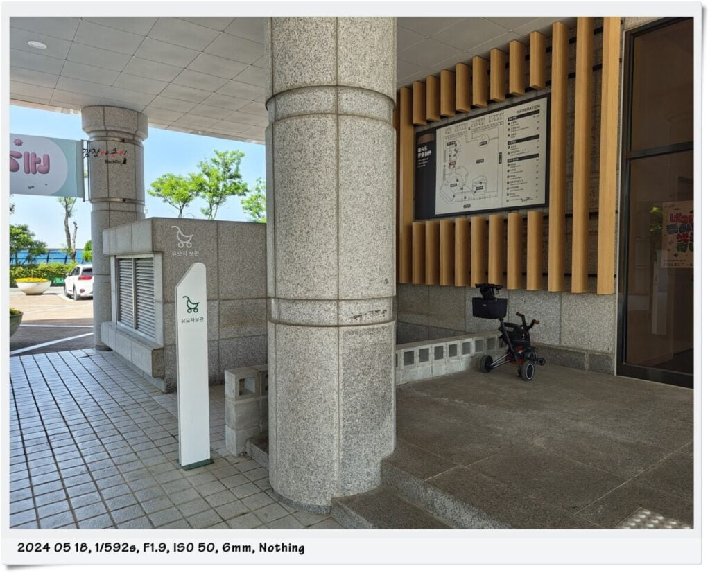 실내에 유모차 반입이 불가하여 야외 유모차 보관대에 두고 들어가야 하니 아예 유모차는 차에 두고 나오시는게 좋을거 같네요.