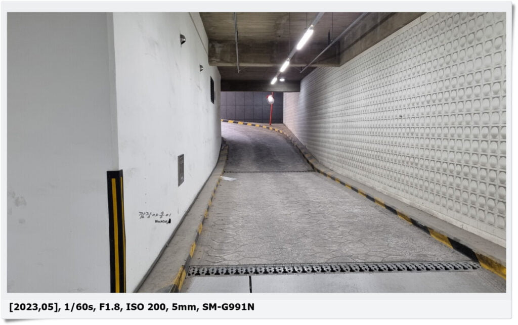 주차장 같은 경우 입/출구가 하나 로 통합되어 있어 반대편에 차량이 진입하는 것을 잘 확인하셔야 합니다. 오르내리는 통로가 좁은편이긴 하나 반바퀴만 돌면 되는 짧은 코스라 크게 부담은 없지만 출구로 나가기 위해 주차장에서 오르막을 올라가는 꺽이는 곳이 제일 난 코스일듯 싶네요. 운전이 서툰 분들은 오르막길로 접어들기 위해 좌측으로 한번에 꺽기 힘들어 보이고 사고날 확률도 가장 많은 곳으로 보입니다.