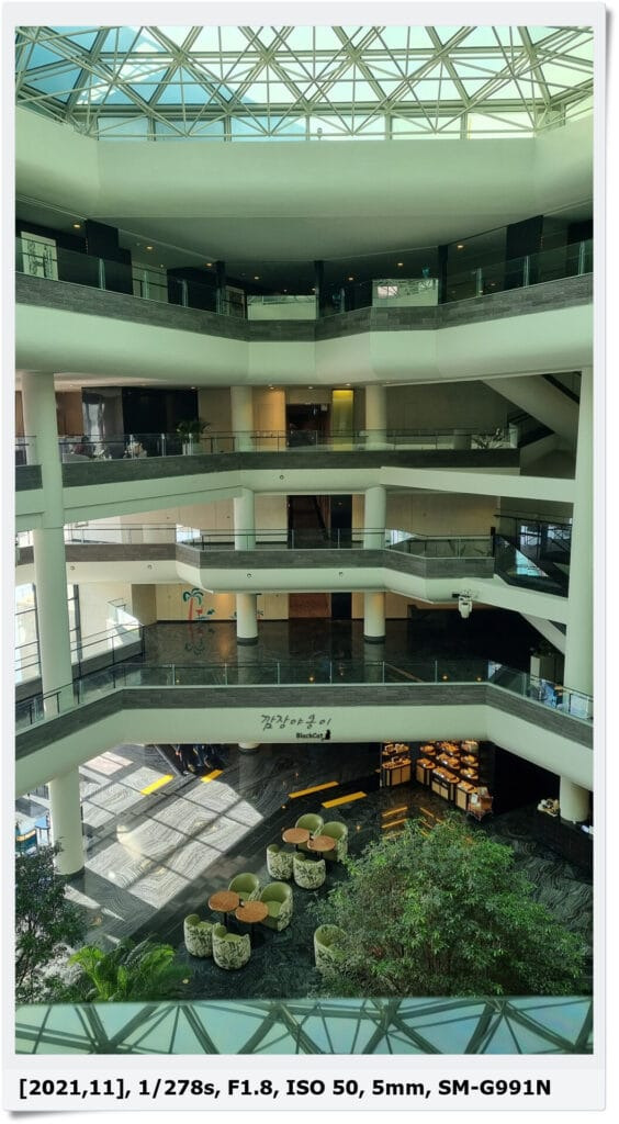 마지막으로 커피까지 마셨네요. 커피는 카페 코너에서 원하는 걸 말하면 바로바로 만들어 주시는데요 와이프는 디카페인 아아를 저는 라떼를 마셨네요. 이 호텔의 장점 중 하나가 객실이든 조식 레스토랑이든 커피인 거 같네요. 향도 좋고 맛도 좋으네요.