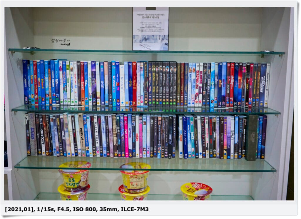 DVD는 본관에서 대여해 올 수 있는데요. 대여비는 공짜지만 DVD 종류가 그렇게 많지는 않습니다.