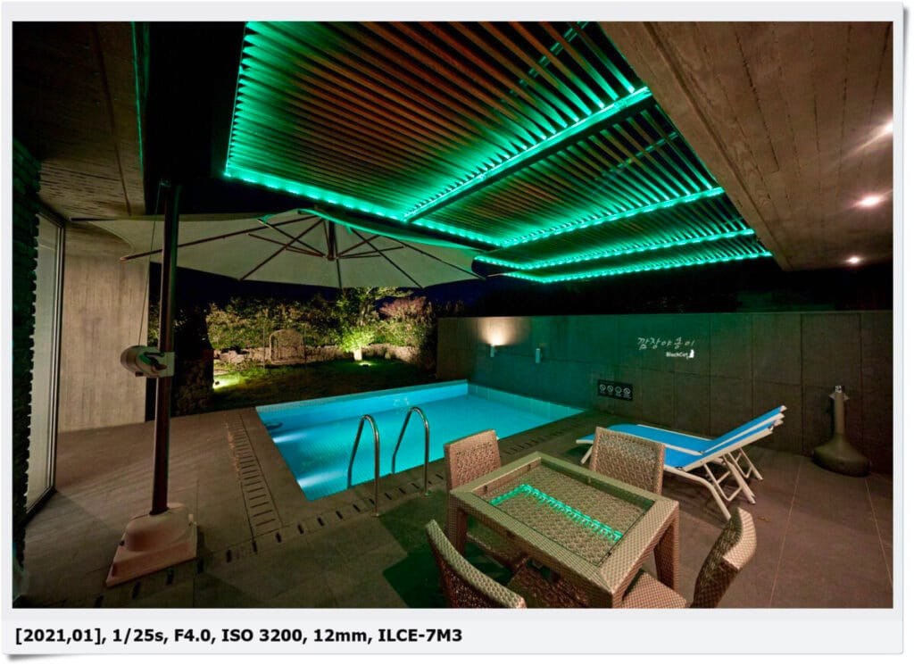 수영장 상부엔 LED도 들어오니 블루투스 스피커 등으로 노래만 틀어두면 딱일거 같네요 ㅎ