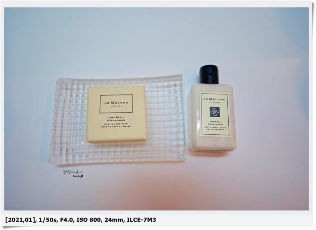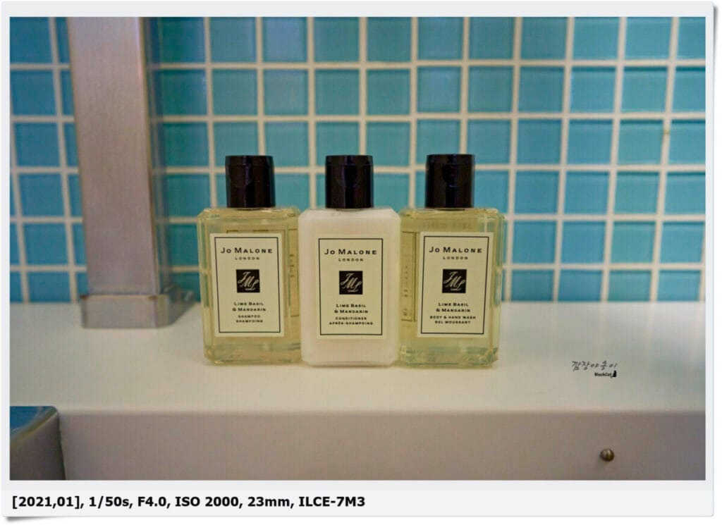 어메니티는 모두 조말론 걸로 구성되어 있네요. 역시 거금을 들여서 예약한 티가 여기서도 나나 봐요. 향이 여러 가지면 좋을 텐데 그 다음 날 새로 받아 봐도 향은 모두 동일하게 라임 바질&만다린이네요. 샴푸, 컨디셔너, 바디 워시 뿐만 아니라 바디 로션과 비누도 모두 조말론 제품이라 마음껏 썼네요. 사실 이걸 사서 쓰기에는 너무 고가의 제품이라 5일 동안 열심히 썼답니다. 남은 건 조금 가져온 건 안 비밀~