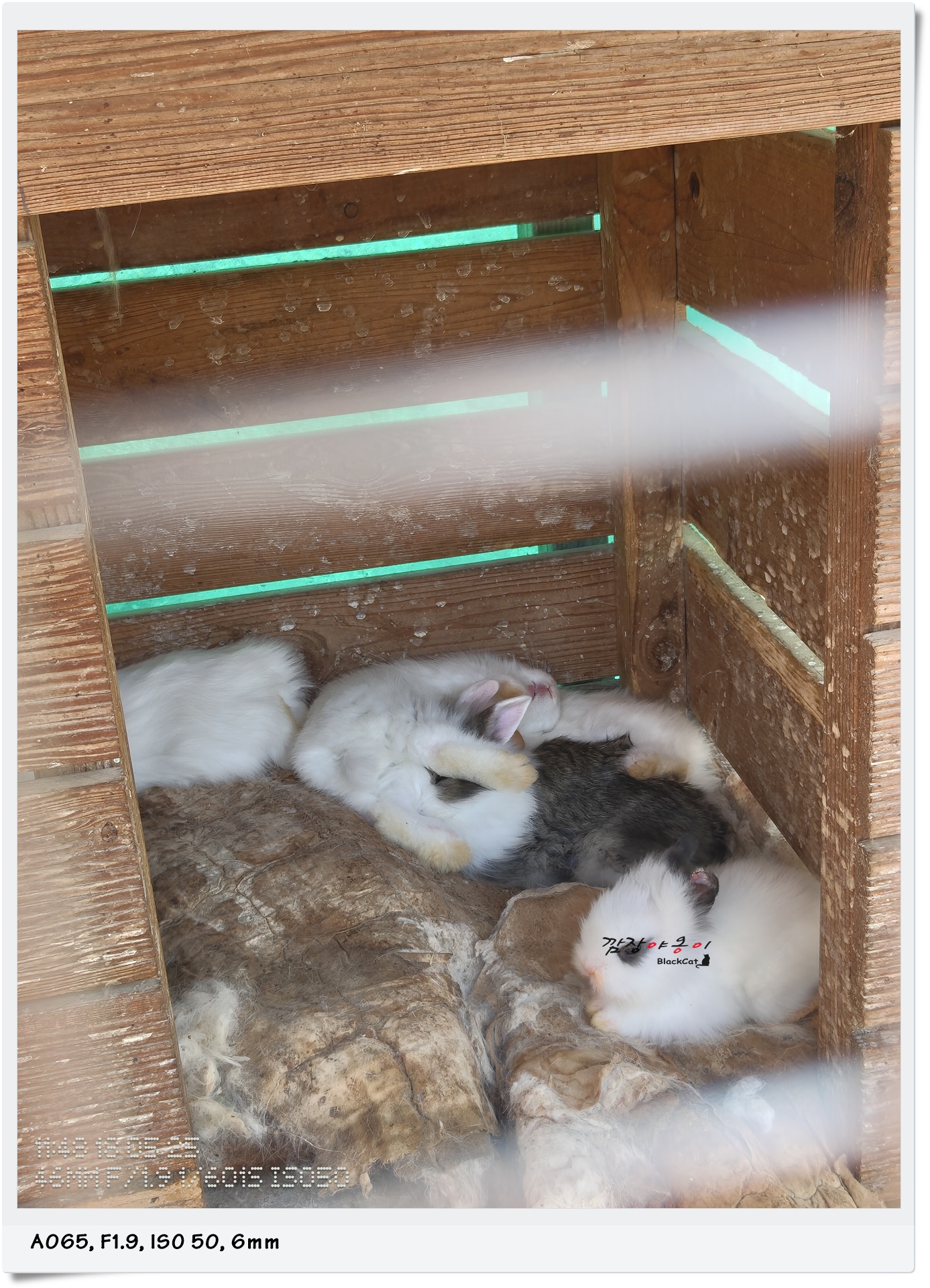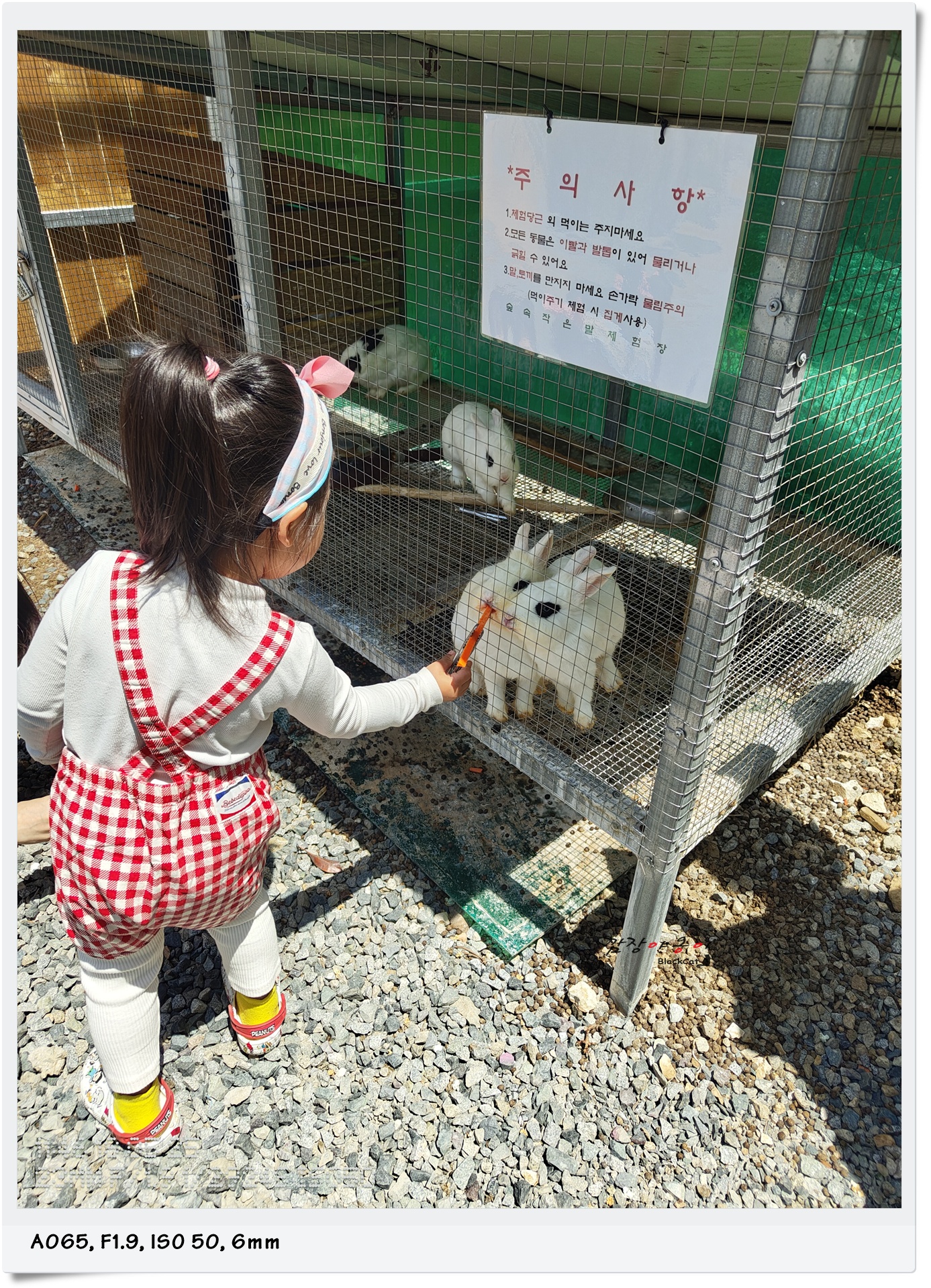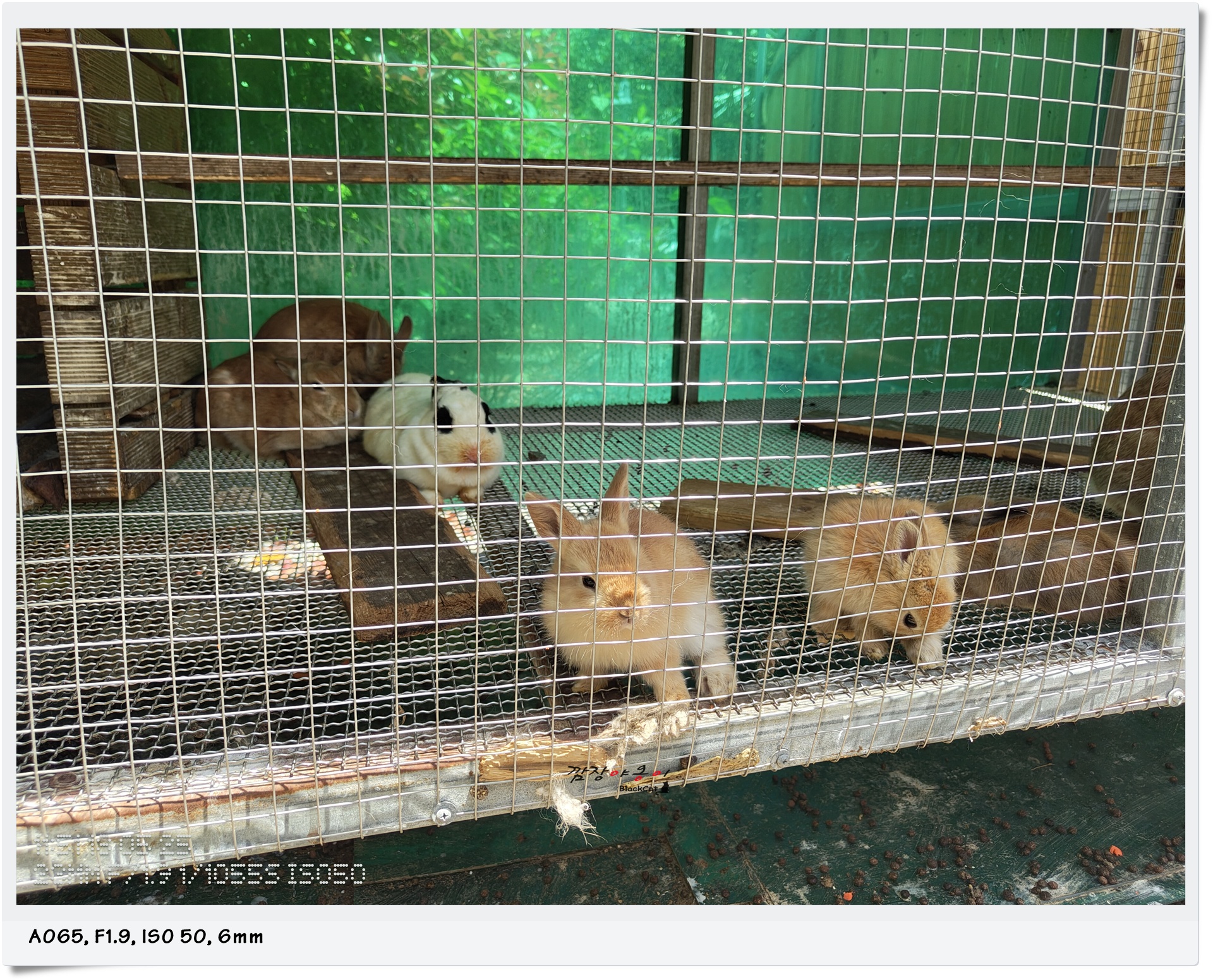 일부 사육장에는 이렇게 아직 어린 토끼들도 함께 있었는데요. 사육장 아래 떨어진 토끼똥을 보며 마음껏 웃으며 토끼들과 당근을 가지고 기싸움을 하던 햇살이랍니다.