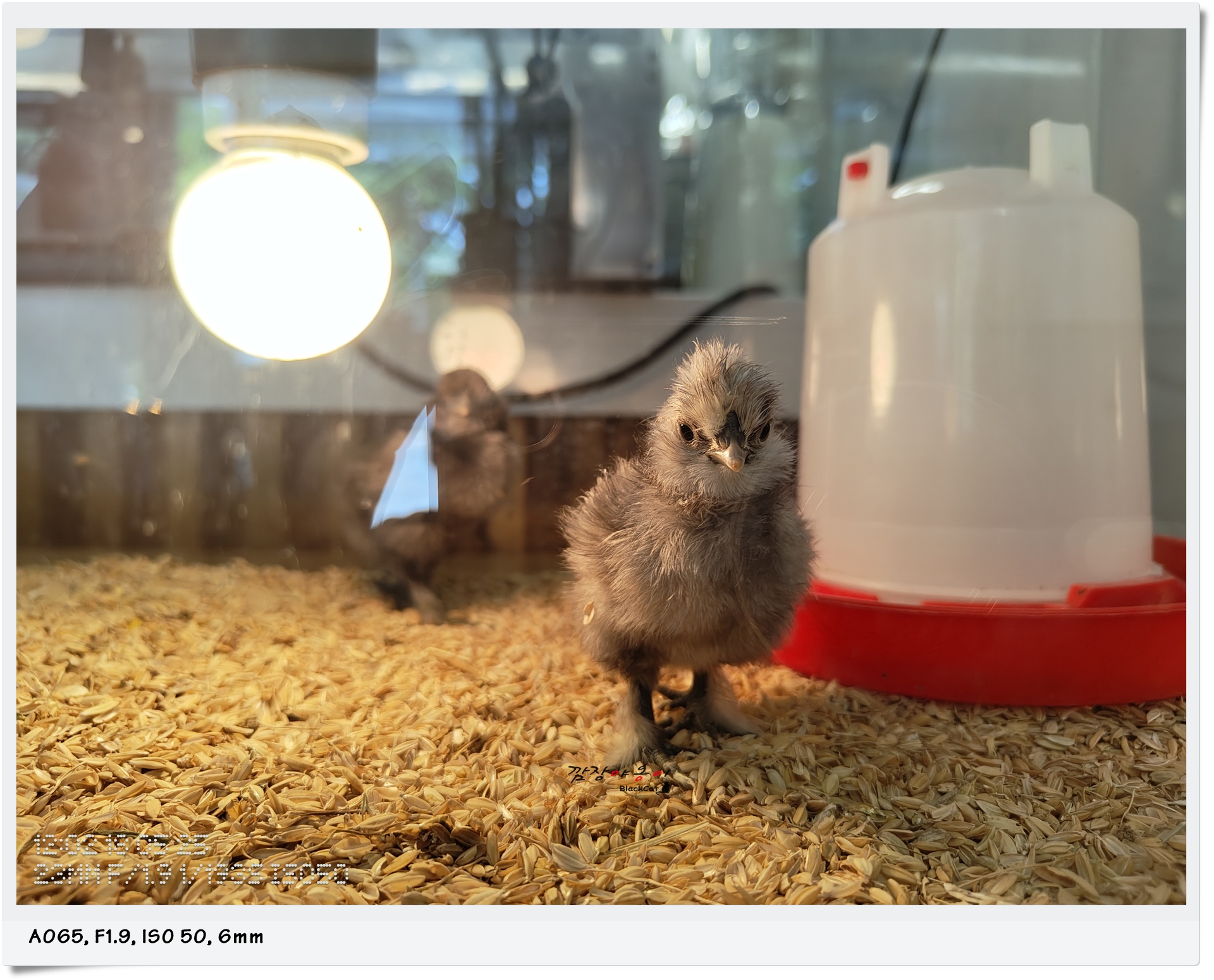 실내엔 부화기와 어린 병아리들이 있었는데요. 병아리를 꺼내봐도 된다고 하셔서 한마리 꺼내서 햇살이에게 보여줬네요.