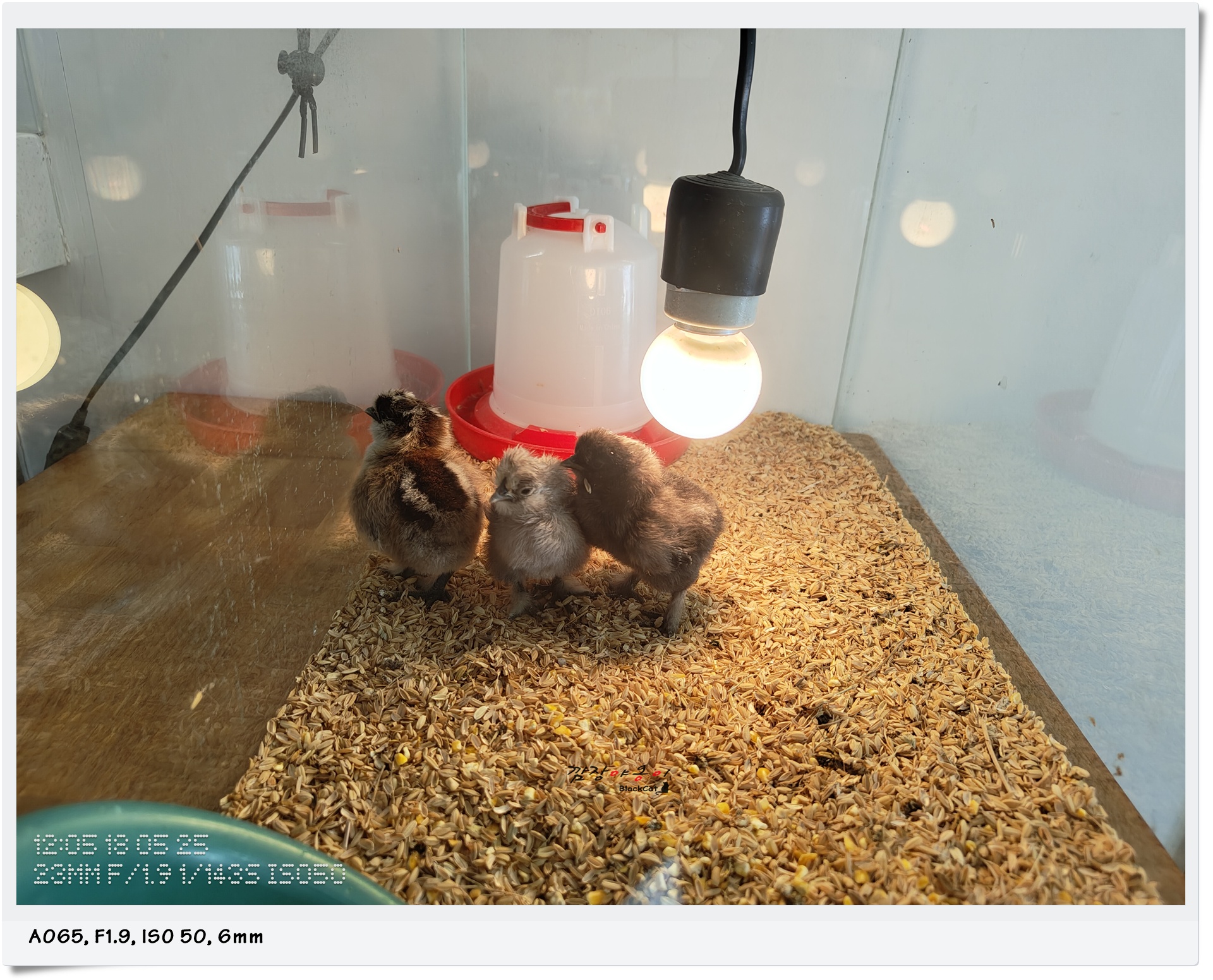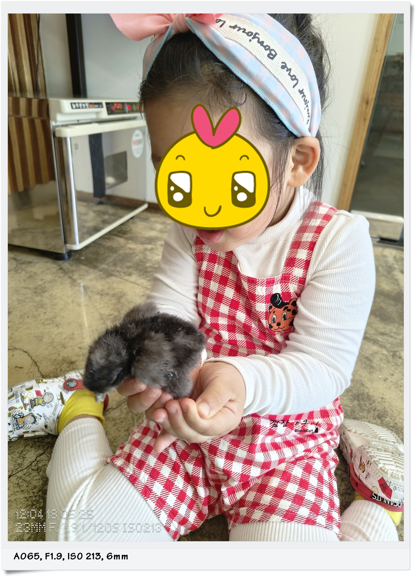 실내엔 부화기와 어린 병아리들이 있었는데요. 병아리를 꺼내봐도 된다고 하셔서 한마리 꺼내서 햇살이에게 보여줬네요.