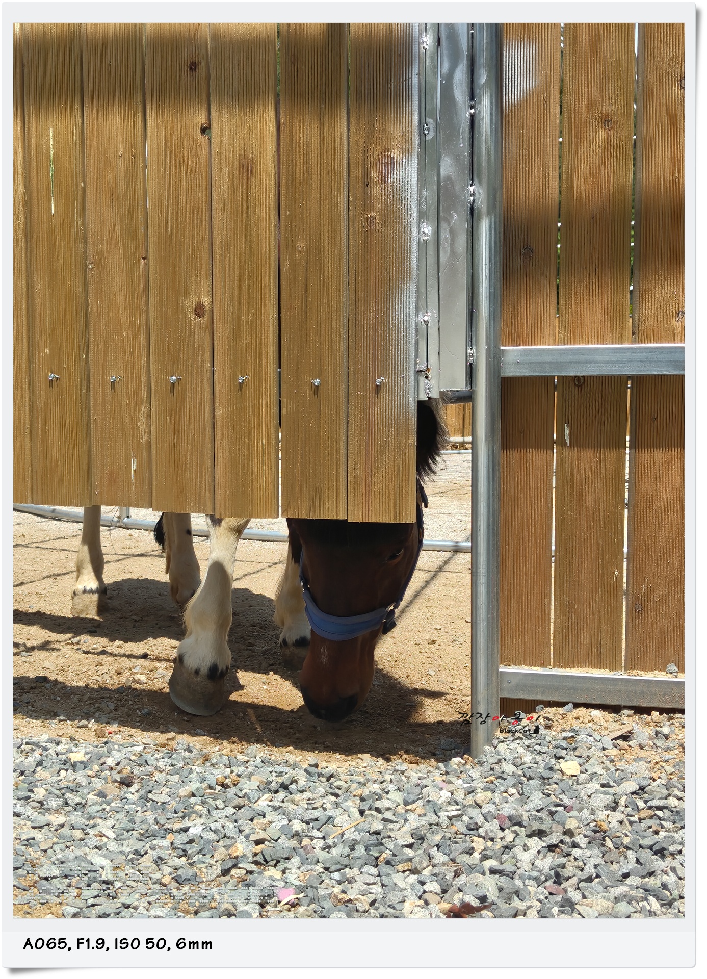 큰 말들이 사는 사육장입니다. 5월임에도 불구하고 햇볕아래는 한여름 만큼이나 뜨거운데요. 당근을 든 아이들이 보이니 말들이 하나 둘 앞쪽으로 모여 당근을 달라고 앞발로 바닥을 긁네요.