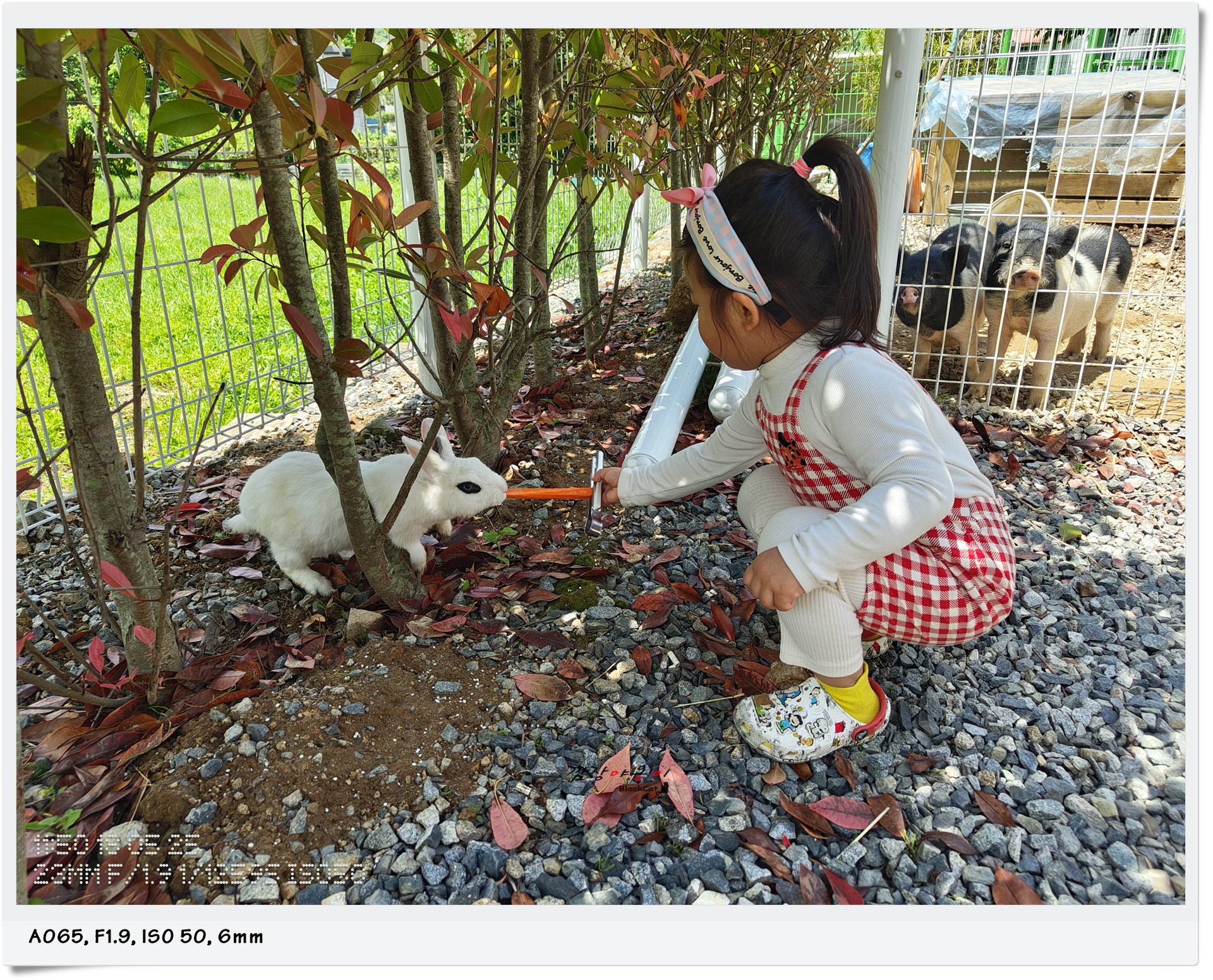 일부 사육장에는 이렇게 아직 어린 토끼들도 함께 있었는데요. 사육장 아래 떨어진 토끼똥을 보며 마음껏 웃으며 토끼들과 당근을 가지고 기싸움을 하던 햇살이랍니다.