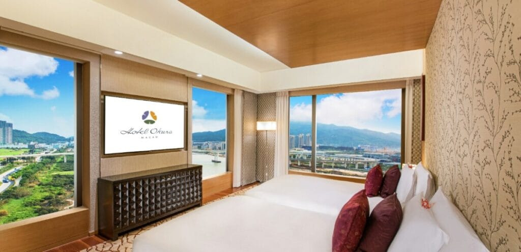 🔍호텔 오쿠라 마카오(홈페이지)는 일본식으로 꾸며진 호텔로 앞서 이야기 했던 갤럭시 마카오와 함께 캘럭시 마카오 복합 리조트 내 위치하고 있으며 마카오 국제공항에서 차로 5분, 타이파 페리 터미널에서 약 10분, 마카오 페리 터미널에서 약 20분 거리에 있습니다. 공항까지는 무료 셔틀을 제공합니다.