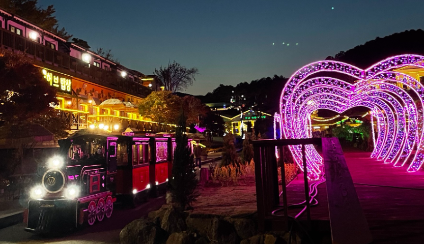 2025년 허브아일랜드의 테마는 '빛으로 피어난 봄'입니다. 꽃을 형상화한 조형물과 이를 아름답게 빛내줄 LED조명이 어우러져 동화속 세상으로 온듯한 착각을 불러 일으킨답니다.