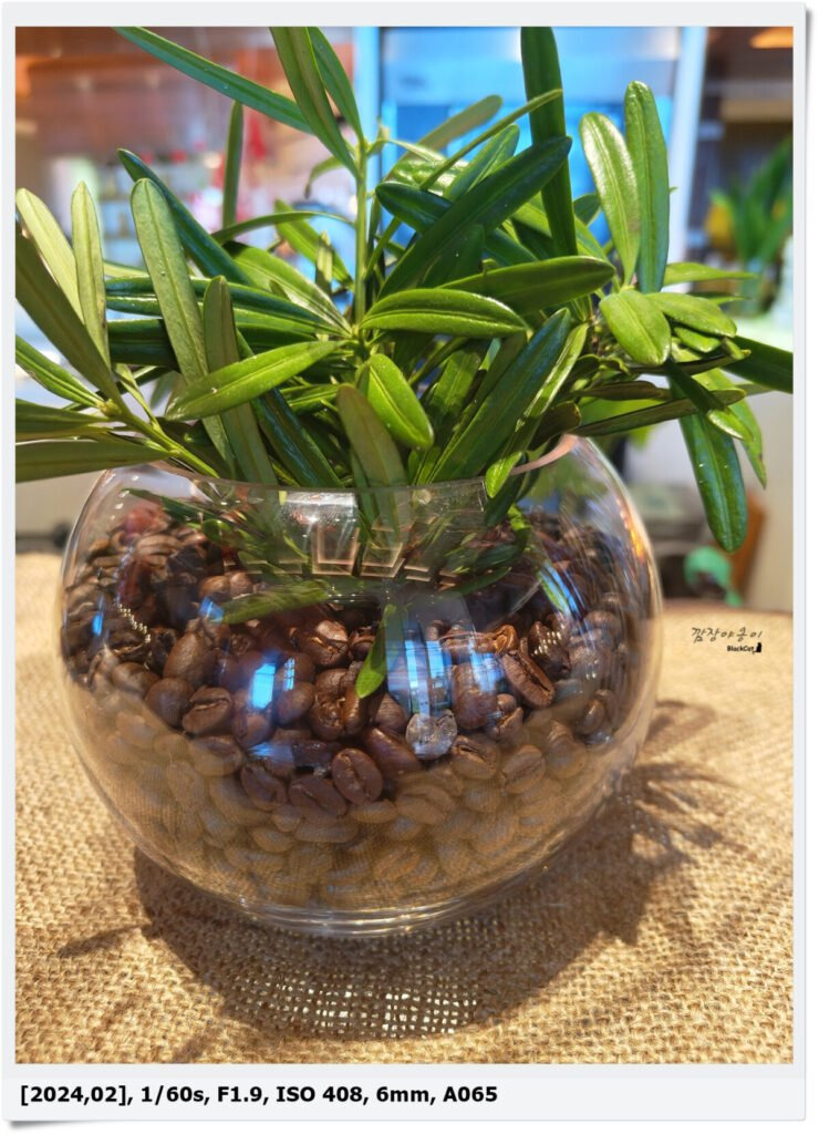 각테이블마다 흙대신 커피콩으로 식물을 키우고 있던데 신기하네요. 저렇게 해도 식물이 자라는 걸까.. 영양분을 어떻게 얻는거지.. 혼자 심각한 상상을 해봅니다 ㅎㅎ