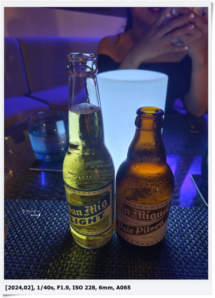 저희는 새우 요리 하나와 탄두리 치킨, 그리고 치킨팟타이를 시켰답니다. 음료는 마지막 날이니 둘 다 산미구엘로~ 필센 하나 라이트 하나 시켰는데 알찔이 저희한테는 라이트가 맞는 걸로~