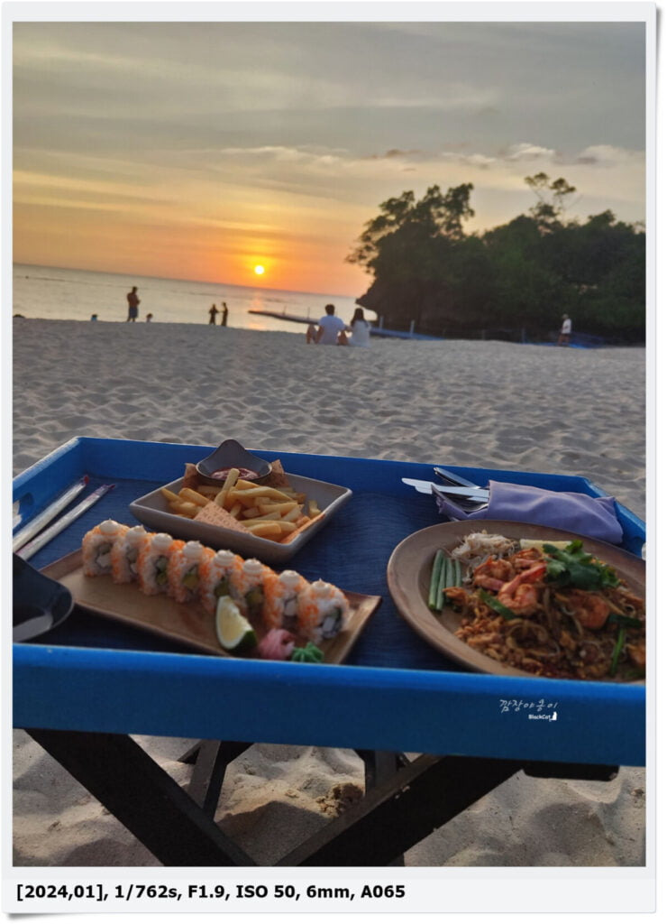 일몰을 보면서 음료와 식사도 했었는데 바람 살랑살랑 부는 해변에서 바라보는 일몰이 참 좋았네요. 그리고 좋았던 점은 주위에 한국인이 거의 없다는 거!! 1~2팀 정도 봤었네요 ㅎㅎ