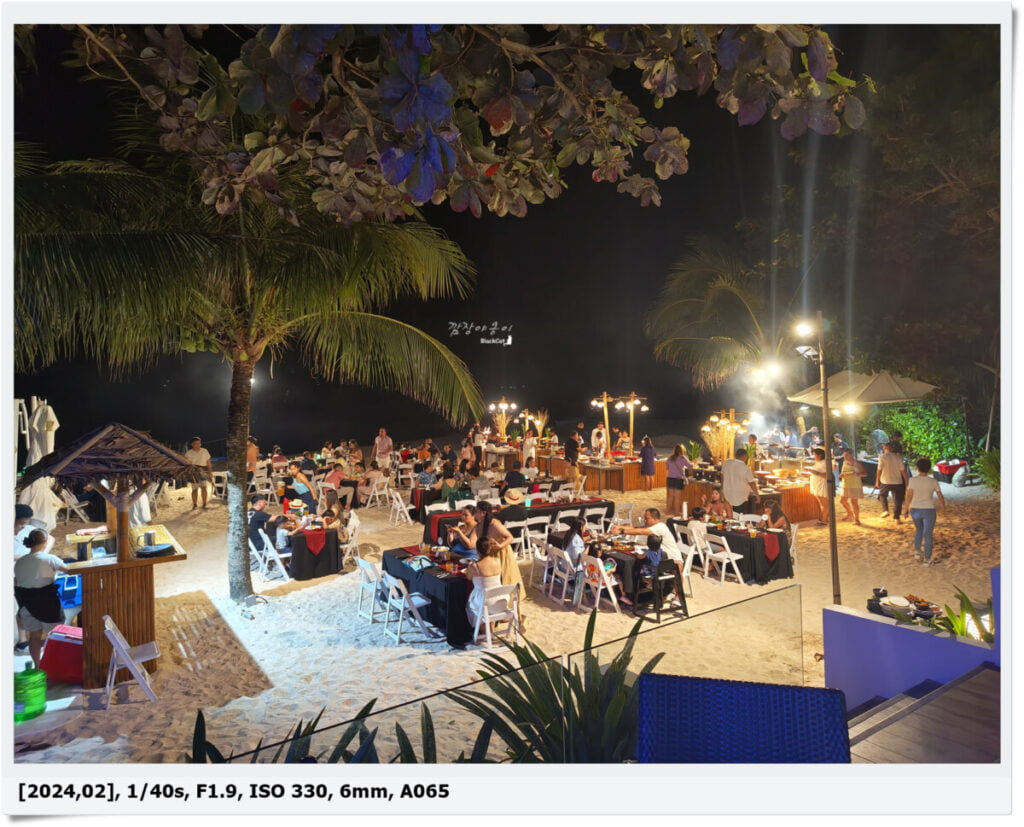 매주 금요일, 토요일 밤에는 뷔페식으로 해변에서 식사를 할 수 있습니다. 가격은 1인에 약 6만원정도입니다. 저희가 처음 도착했을때만 해도 한~두팀 정도 있었는데 어느새 뒤돌아 보니 사람이 가득차서 빈좌석이 없네요.