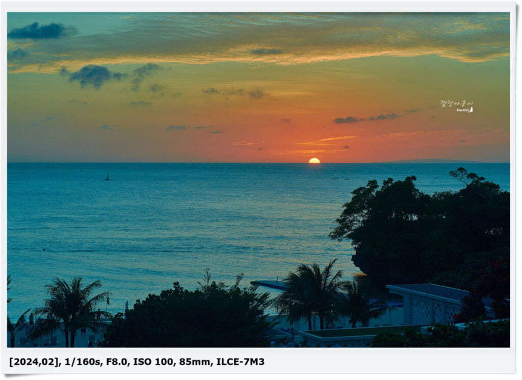 저희가 필리핀으로 출발하기 전만 해도 일기예보상 일주일 내내 비예보가 있어서 일몰을 못보면 어쩌나 걱정을 했었는데 딱 하루만 아침에 소나기 10분 정도 오고 오후엔 항상 맑아서 매일매일 일몰을 볼 수 있었답니다.