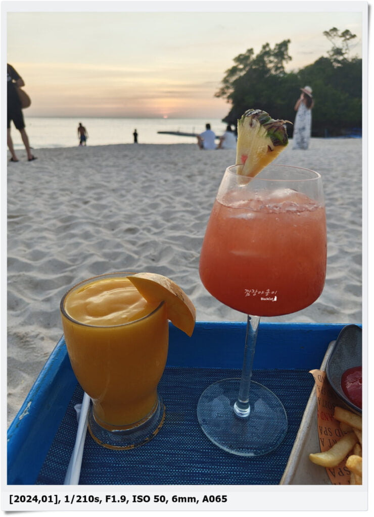 일몰을 보면서 음료와 식사도 했었는데 바람 살랑살랑 부는 해변에서 바라보는 일몰이 참 좋았네요. 그리고 좋았던 점은 주위에 한국인이 거의 없다는 거!! 1~2팀 정도 봤었네요 ㅎㅎ