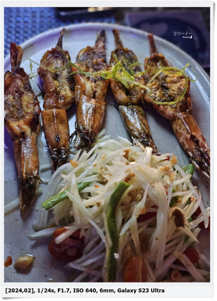 둘 다 고수를 먹지 않는데 고수를 빼달라는 말을 미처 생각을 못해서 치킨에 딸려 나오는 샐러드와 새우에 딸려 나오는 샐러드에 고수가 있어서 빼면서 먹느라 고생했네요. 고수 싫어하시는 분들은 반드시 미리 말씀하시길~