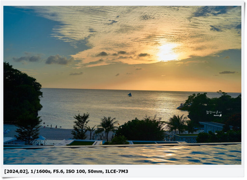 저희가 필리핀으로 출발하기 전만 해도 일기예보상 일주일 내내 비예보가 있어서 일몰을 못보면 어쩌나 걱정을 했었는데 딱 하루만 아침에 소나기 10분 정도 오고 오후엔 항상 맑아서 매일매일 일몰을 볼 수 있었답니다.